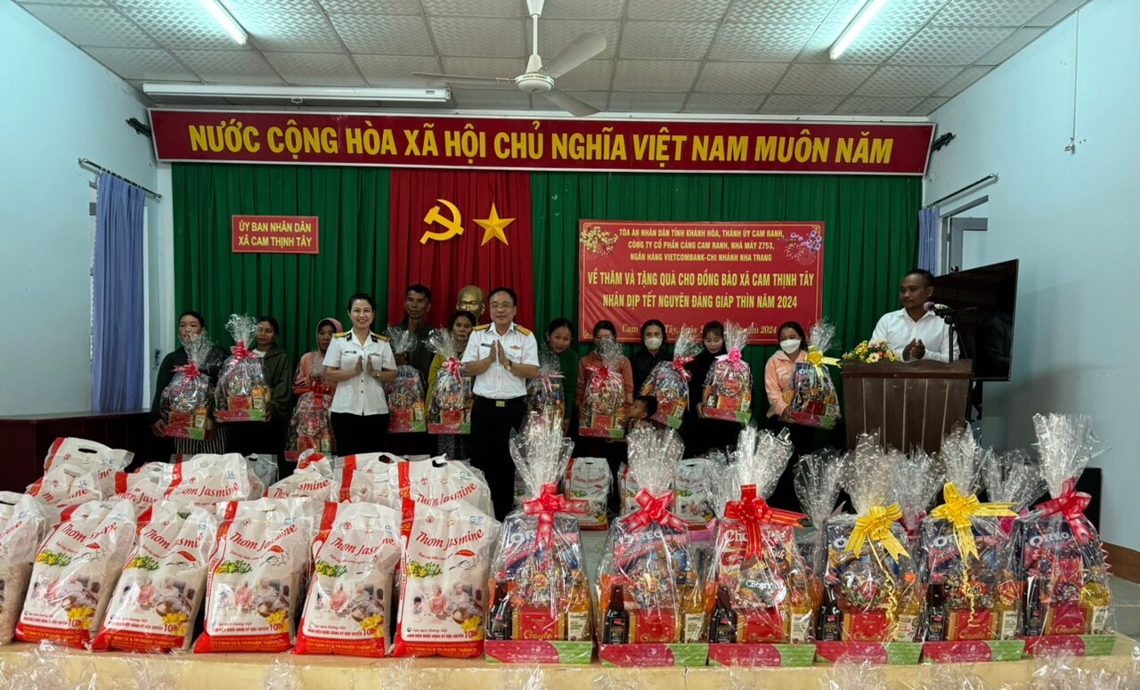 Ngày 27/1, tại xã Cam Thịnh Tây, TP. Cam Ranh, tỉnh Khánh Hòa, Nhà máy Z753 phối hợp với các đơn vị: Toà án nhân dân tỉnh Khánh Hòa, Thành uỷ Cam Ranh, Công ty Cổ phần Cảng Cam Ranh tổ chức thăm, tặng 80 phần quà trị giá 48 triệu đồng cho đồng bào dân tộc của xã Cam Thịnh Tây nhân dịp đón xuân Giáp Thìn năm 2024.