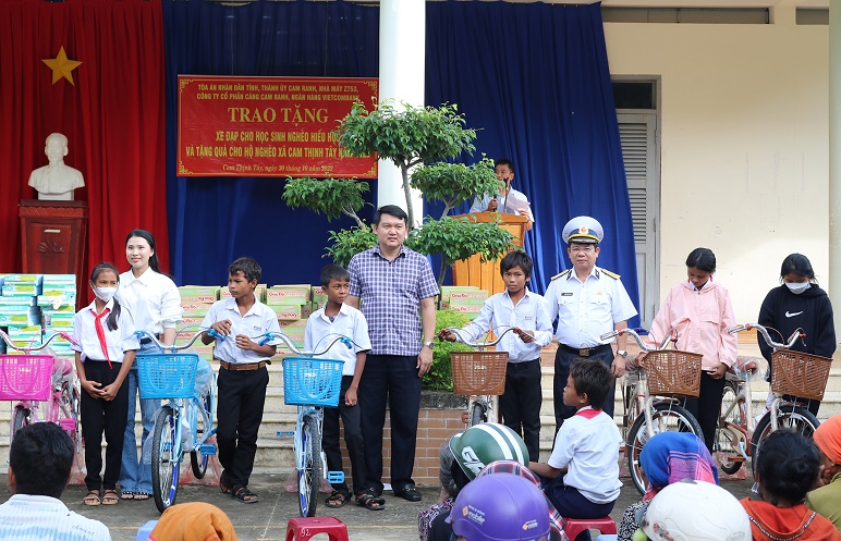 Chiều 30/10, tại Trường THCS Cam Thịnh Tây (xã Cam Thịnh Tây, TP. Cam Ranh, tỉnh Khánh Hòa) Nhà máy Z753, Cục Kỹ thuật Hải quân cùng các thành viên trong Nhóm hỗ trợ các hộ gia đình khó khăn tổ chức trao xe đạp cho học sinh có hoàn cảnh khó khăn, hộ nghèo của địa phương.