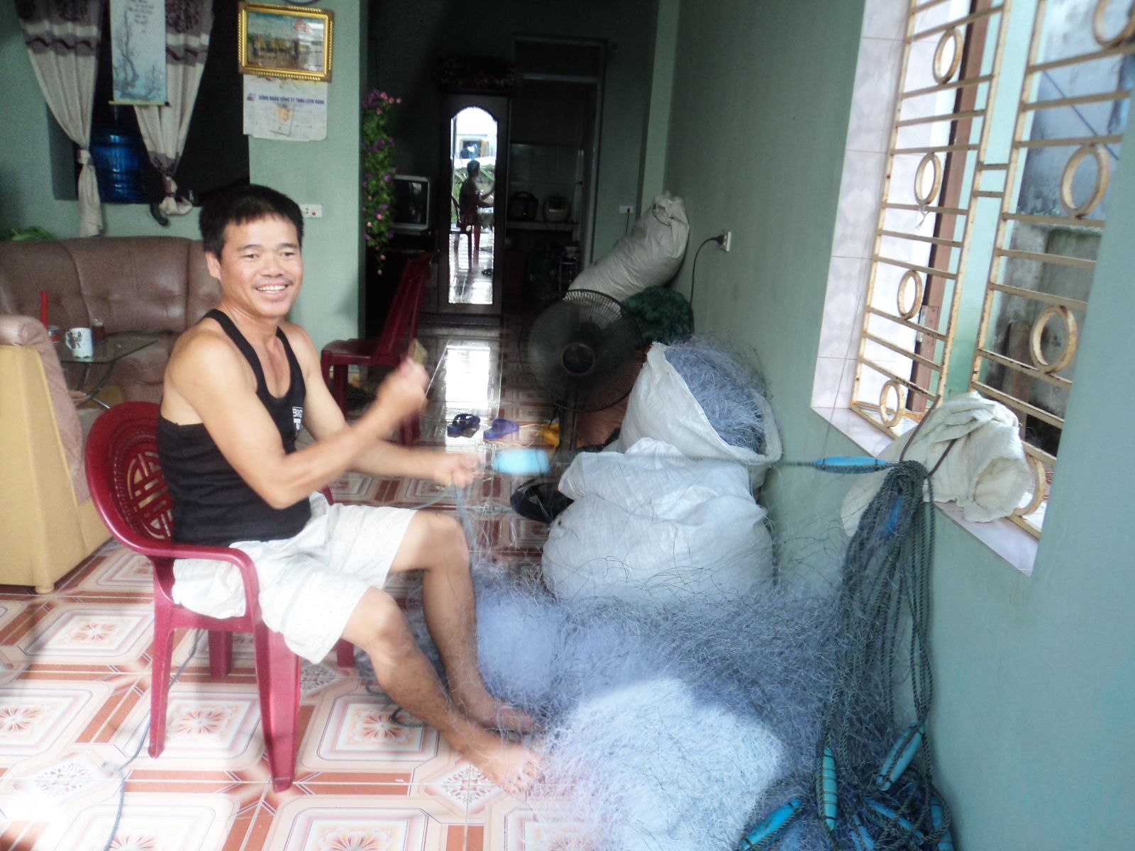 Ngư dân xã Đại Hợp, huyện Kiến Thụy sửa lưới chuẩn bị cho đợt vươn khơi