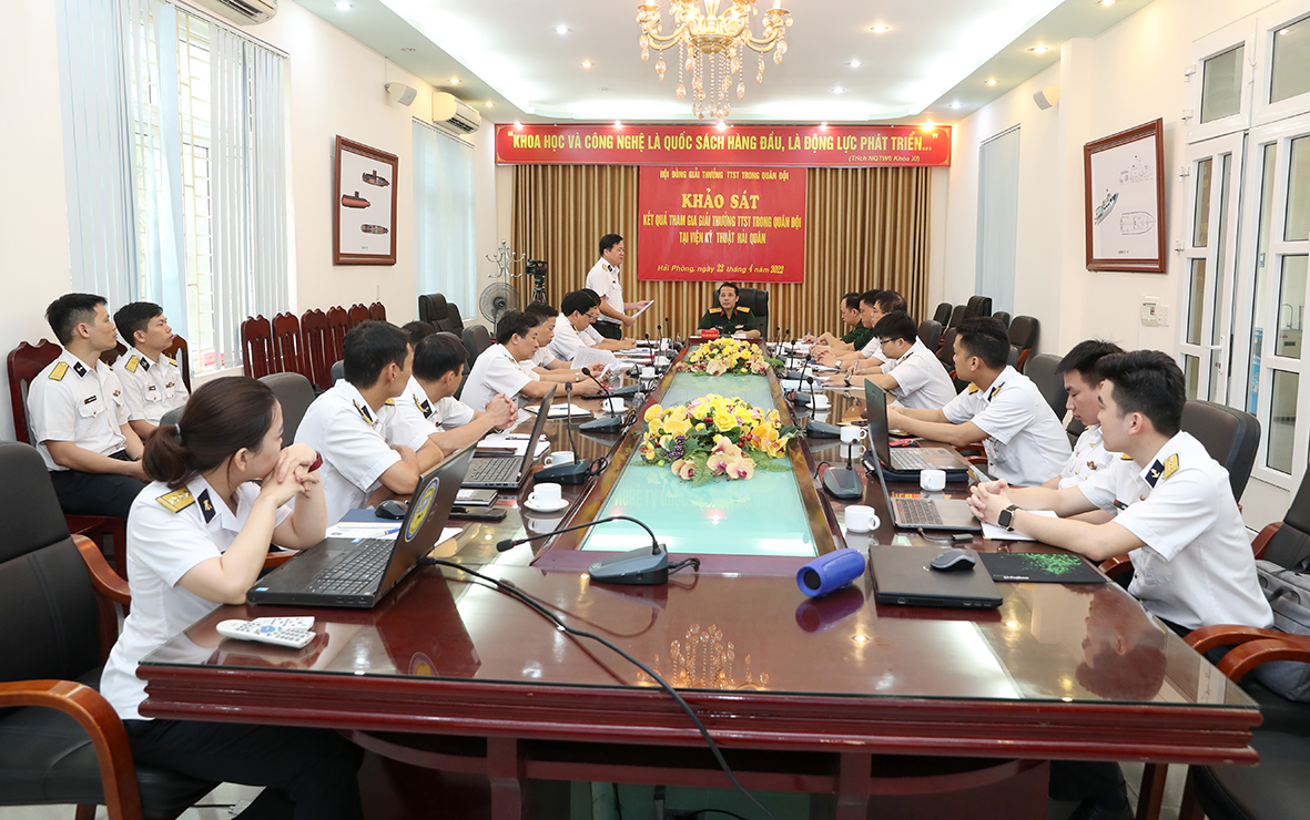 Sáng 22/4, tại Viện Kỹ thuật Hải quân (Hải Phòng), Hội đồng Giải thưởng Tuổi trẻ sáng tạo (TTST) trong Quân đội tổ chức khảo sát kết quả hoạt động Giải thưởng TTST trong Quân đội tại Quân chủng Hải quân.