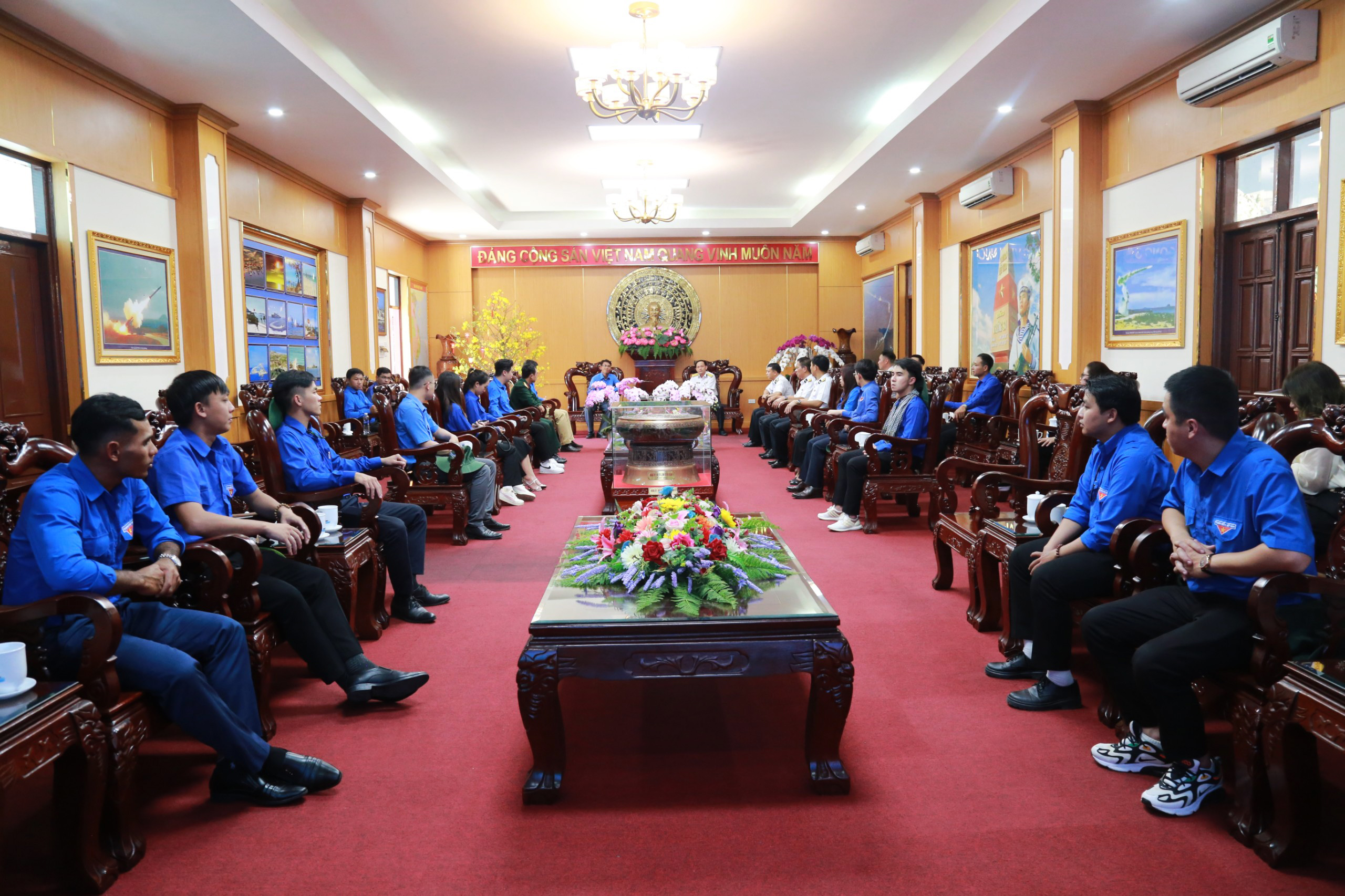 Trong chương trình giao lưu “Tuổi trẻ vì biển, đảo quê hương”, đoàn công tác cùng cán bộ, chiến sĩ Vùng 4 đã xem phim truyền thống về chặng đường hơn 68 năm xây dựng, chiến đấu, chiến thắng và trưởng thành của Hải quân Nhân dân Việt Nam; được nghe Đại tá Bùi Văn Bền, Chủ nhiệm Chính trị Vùng cung cấp những thông tin mới nhất về tình hình biển, đảo và nhiệm vụ của cán bộ, chiến sĩ Hải quân trong bảo vệ vững chắc chủ quyền...