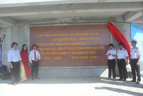 Lễ gắn biển Nhà Văn hóa đa năng trên đảo Cô Lin do Agribank tài trợ