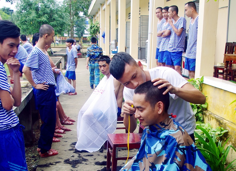 Vùng 4 Hải quân tổ chức cắt tóc cho chiến sĩ mới
