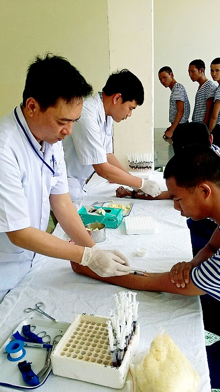 Quân y Vùng 4 lấy mẫu máu để kiểm tra sức khỏe của chiến sĩ mới.