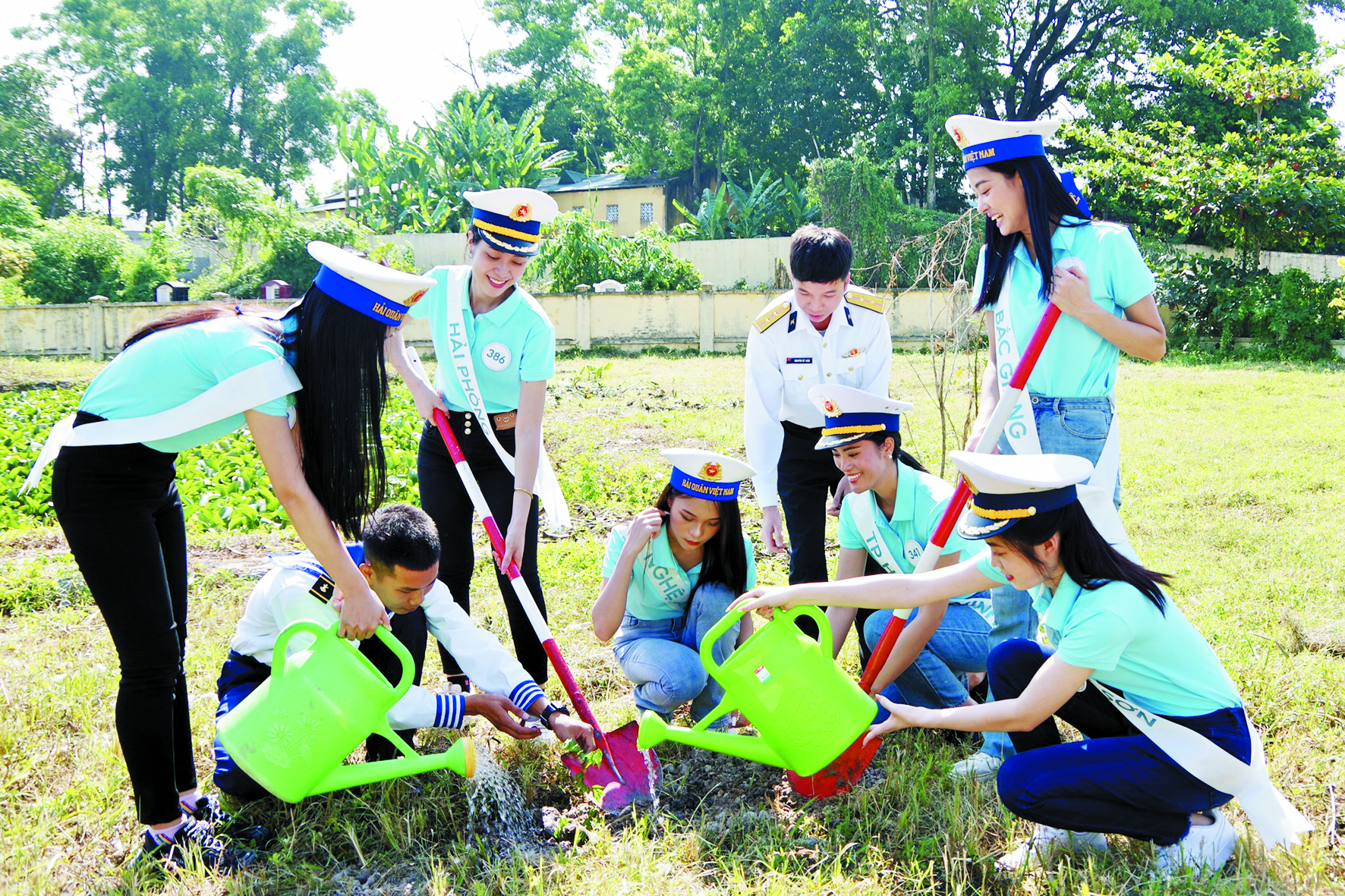 Các thí sinh dự thi hoa hậu biển, đảo trồng cây tại Lữ đoàn 147, Vùng 1