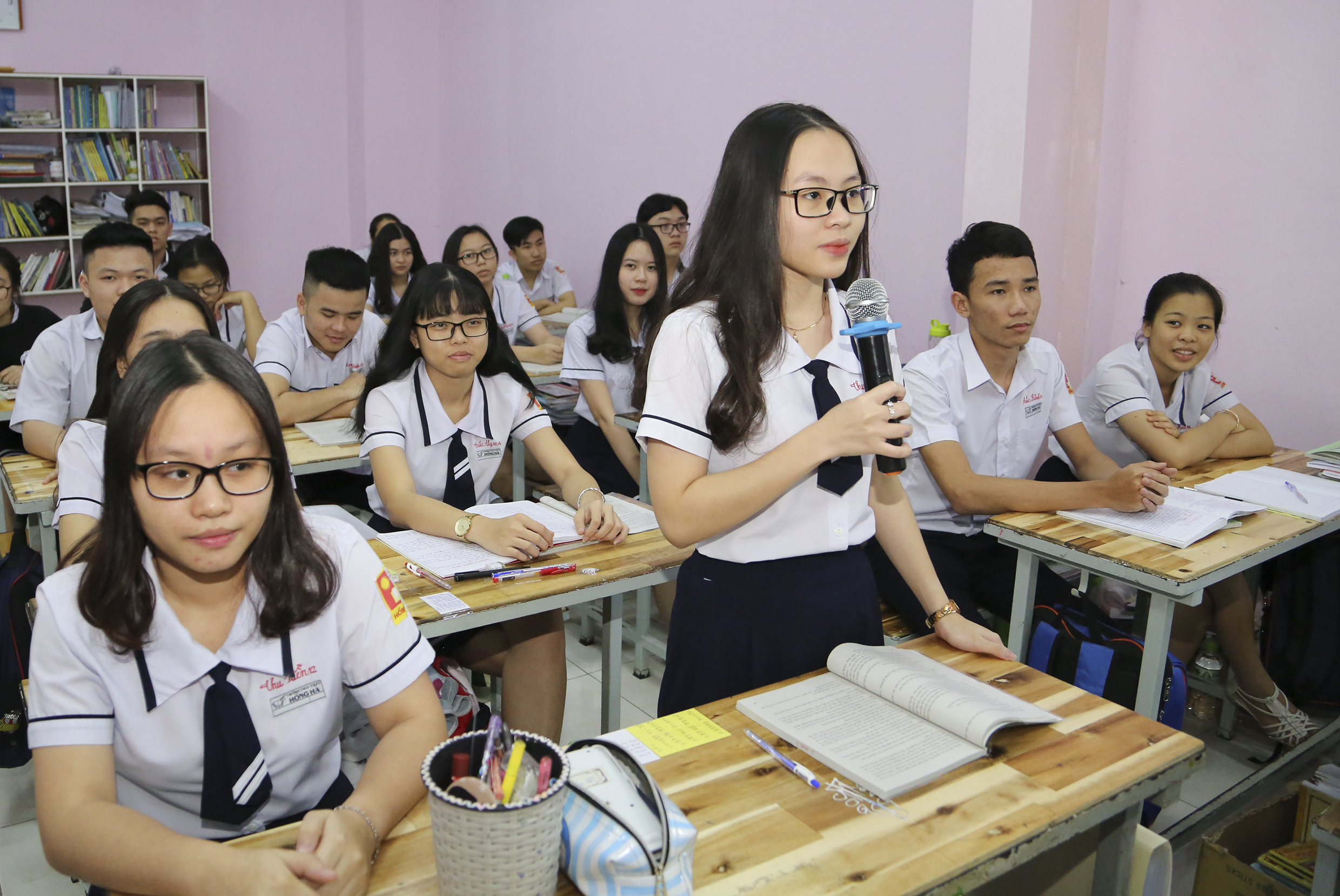 Em Phan Thị Thu Quyền phát biểu trong giờ học