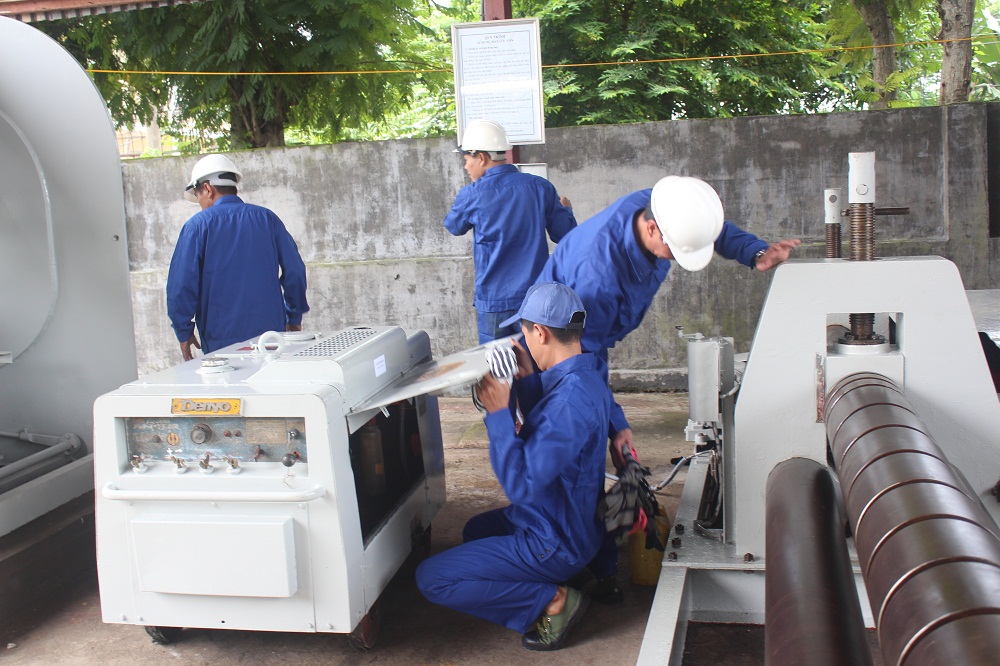 Dẫn chúng tôi tham quan một vòng Trạm sửa chữa, Thiếu tá Lưu Hải Nam, Trạm trưởng hồ hởi giới thiệu về những quả phao neo tàu do Trạm sản xuất: Sản xuất phao neo tàu là một nhiệm vụ quan trọng của Trạm chúng tôi được Đảng ủy, chỉ huy Đoàn hết sức quan tâm, tin tưởng giao nhiệm vụ. Ban đầu chỉ có một bản vẽ chưa được hoàn chỉnh, sau đó chúng tôi đã nghiên cứu, thiết kế và bổ sung cho phù hợp rồi xin ý kiến chỉ đạo của thủ trưởng cấp trên. Không quản ngày đêm, cán bộ, nhân viên Trạm bắt tay vào việc xây dựng quy trình sản xuất. Lúc đầu, do chưa có kinh nghiệm nên chúng tôi rất khó khăn về kỹ thuật vì trang bị máy móc thô sơ... Nhưng với ý chí quyết tâm cao, cán bộ, nhân viên kỹ thuật đã sản xuất thành công phao neo tàu, được thủ trưởng các cấp biểu dương, khen thưởng.