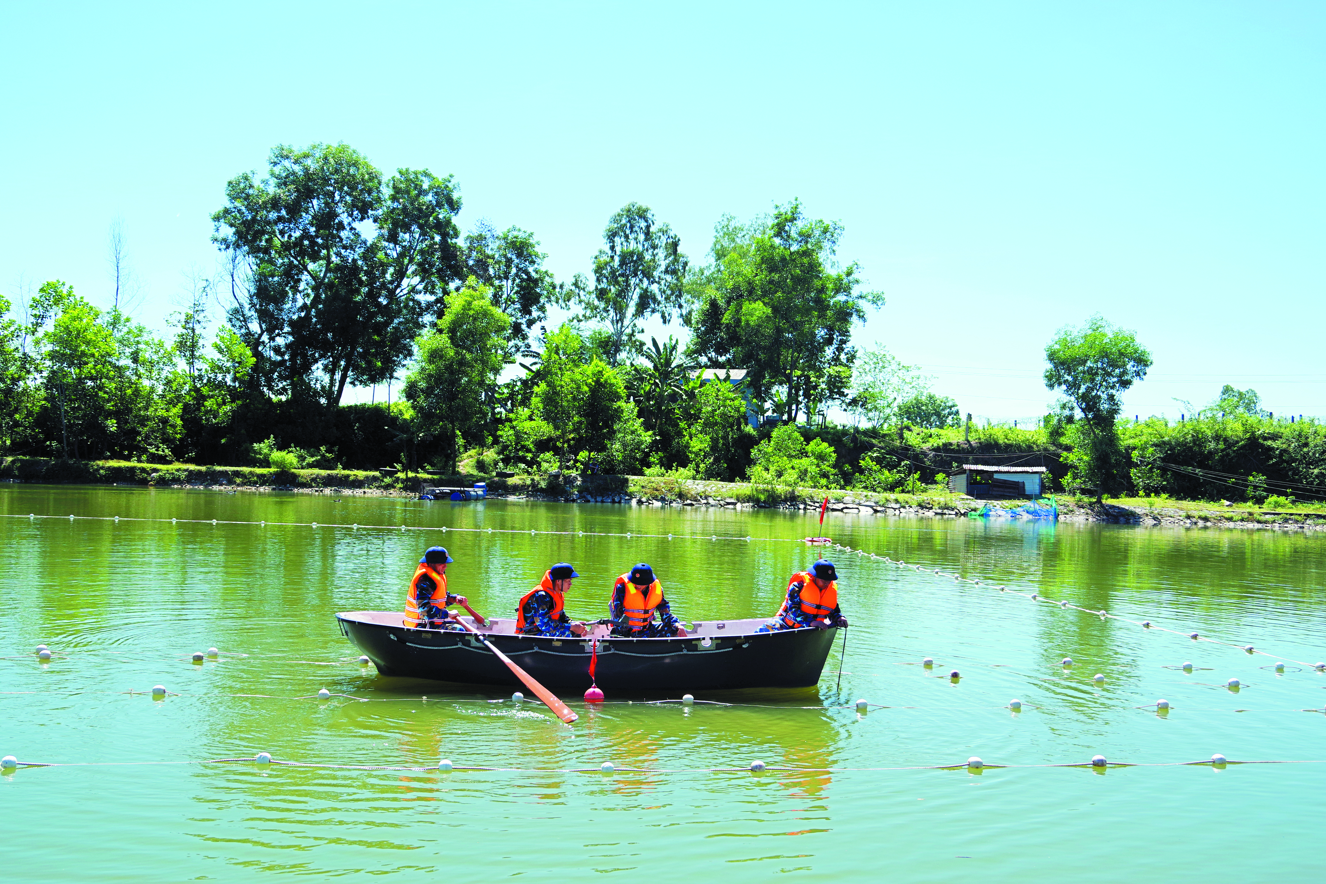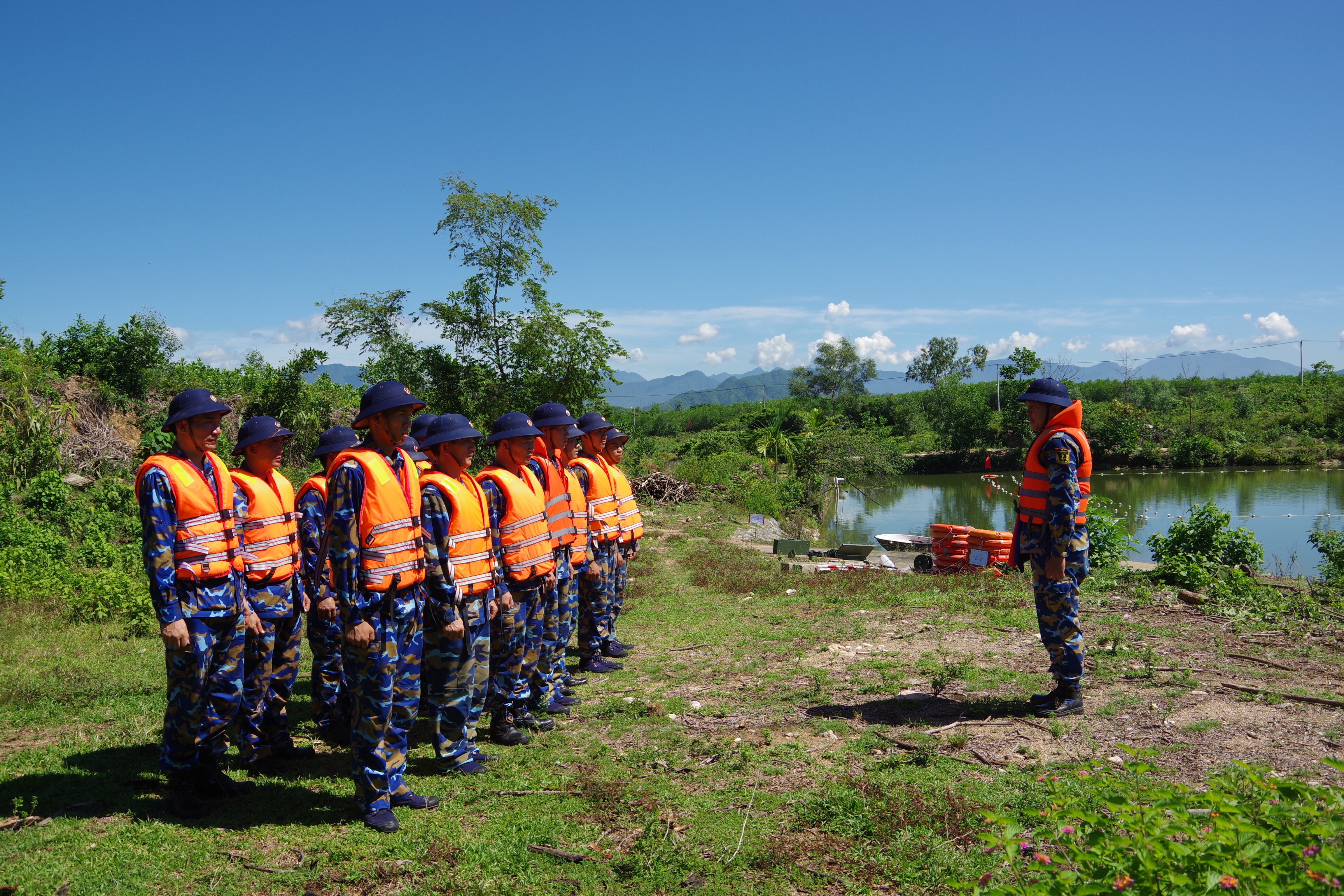 Cán bộ, nhân viên Lữ đoàn 83 huấn luyện dò vật liệu nổ trên sông biển. Ảnh: TTV