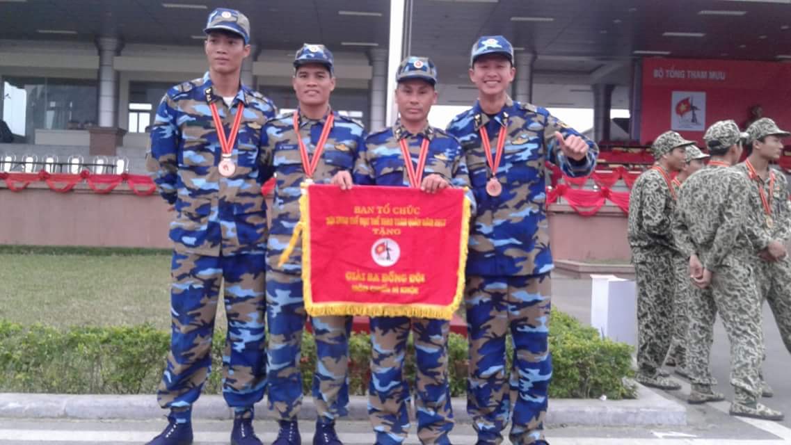 Đội tuyển môn chiến sĩ khỏe Quân chủng Hải quân đoạt giải Ba đồng đội trong Hội thao toàn quân năm 2017. Ảnh TTV
