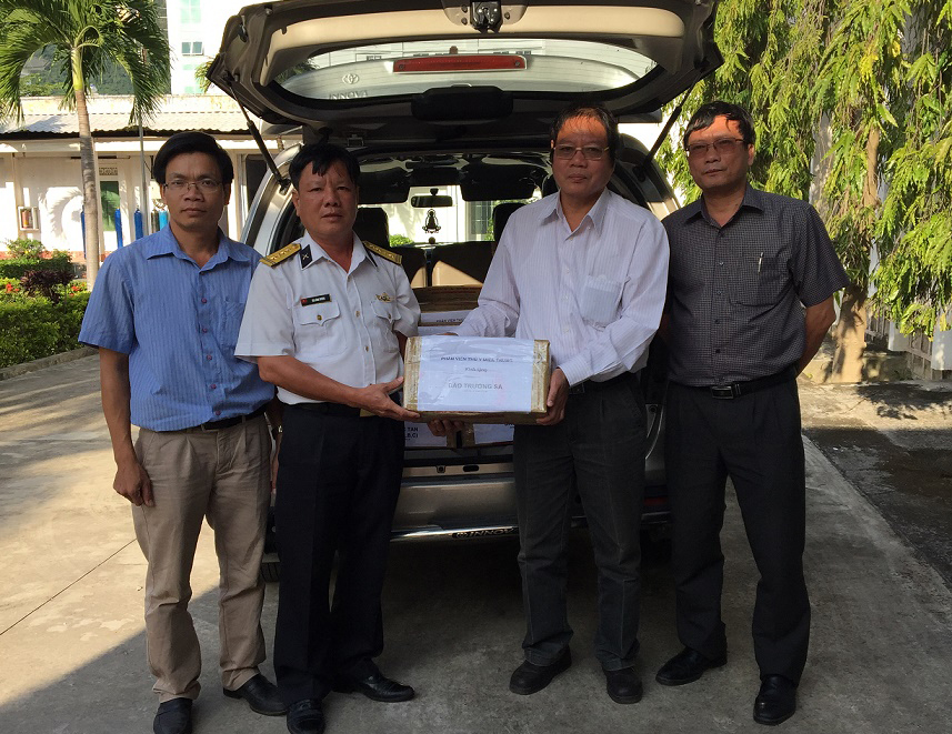 Phân viện Thú y miền Trung do TS. Nguyễn Đức Tân, Giám đốc Phân viện Thú y miền Trung làm trưởng đoàn đã trao tặng 50 bộ dụng cụ và một số thuốc thú y cho quân dân huyện đảo Trường Sa.