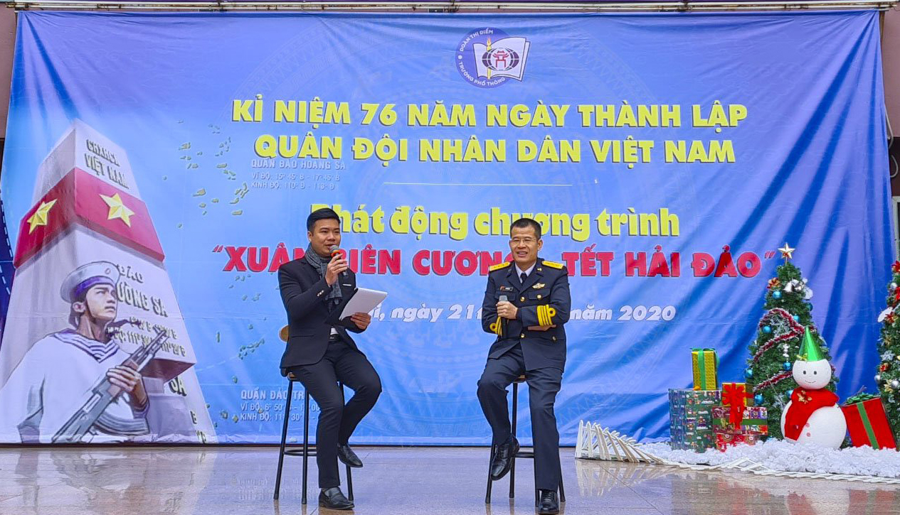 Sáng 21-12, tại Hà Nội, Đoàn Đo đạc biên vẽ hải đồ và nghiên cứu biển, Bộ Tham mưu Hải quân phối hợp với Trường THPT Đoàn Thị Điểm tổ chức chương trình “Em yêu biển, đảo Việt Nam” và phát động chương trình “Xuân biên cương, tết hải đảo”.
