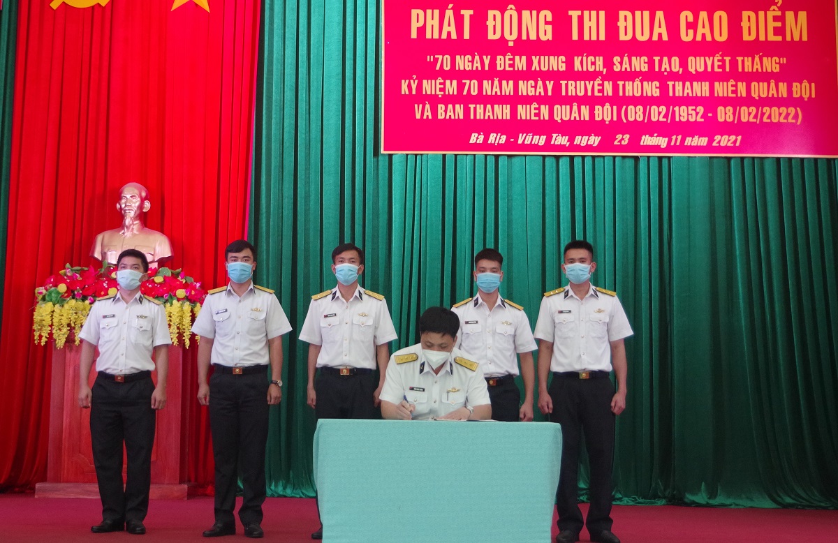 Chiều 23/11 tại TP. Vũng Tàu, Đoàn cơ sở Lữ đoàn 171, Vùng 2 Hải quân tổ chức phát động thi đua cao điểm “70 ngày đêm xung kích, sáng tạo, quyết thắng”, chào mừng kỷ niệm 70 năm Ngày truyền thống Thanh niên Quân đội và Ban Thanh niên Quân đội (8/2/1952 – 8/2/2022).