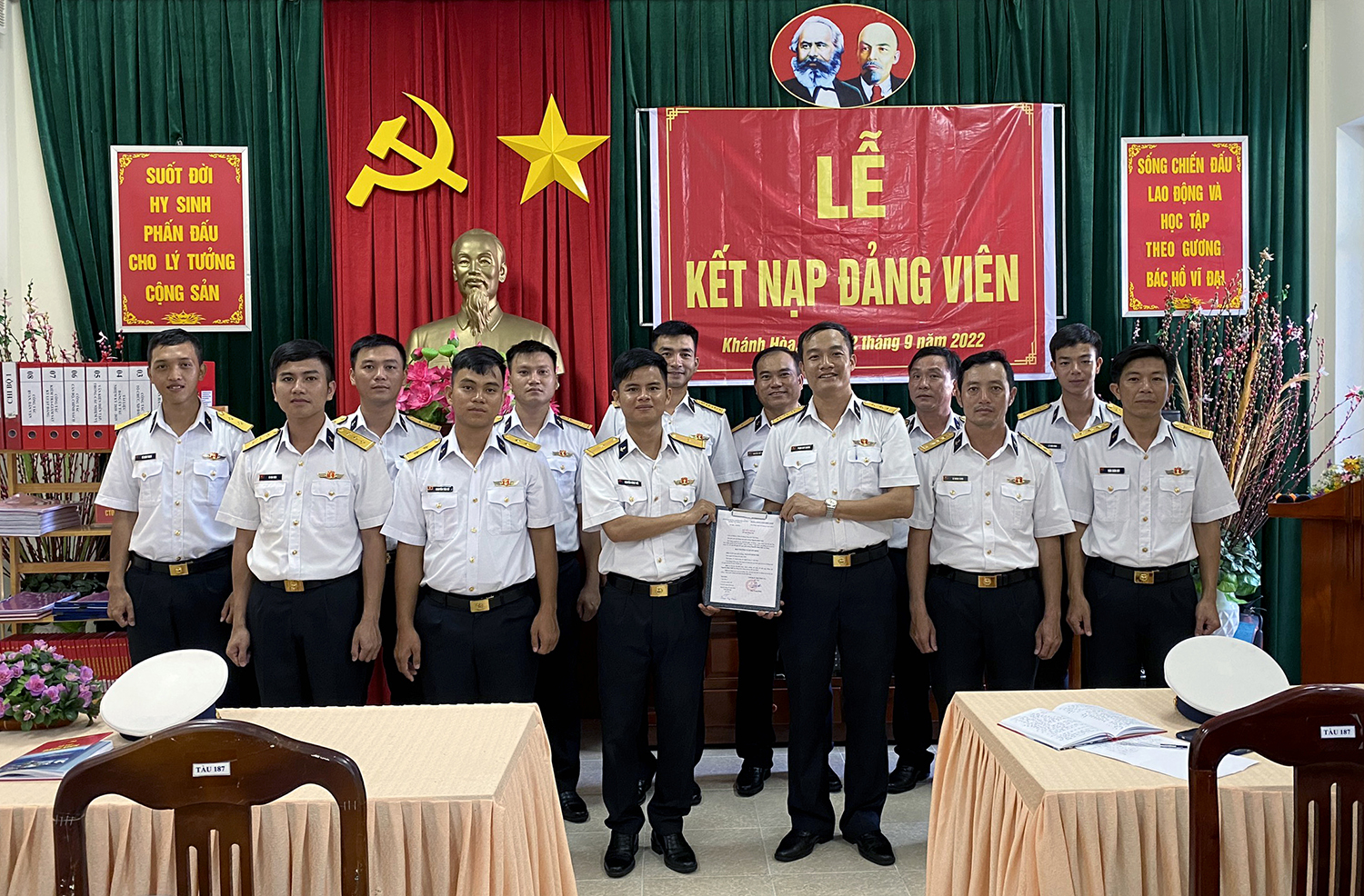 Chúng tôi tham dự một buổi sinh hoạt của Chi bộ Tàu 863 với nội dung quán triệt nhiệm vụ và xây dựng kế hoạch đại hội chi bộ làm trước để rút kinh nghiệm trong toàn Vùng 3. Khi đồng chí chủ trì lấy đóng góp của toàn thể đảng viên, nhiều ý kiến đã phát biểu thể hiện trách nhiệm cao với nhiệm vụ.
