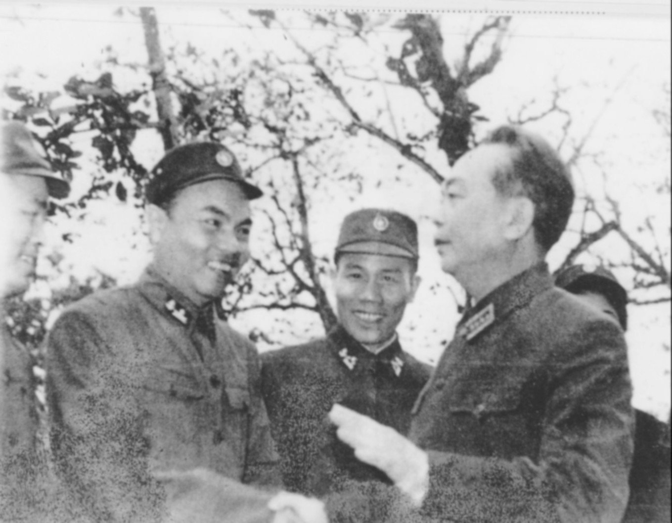 Đại tướng Võ Nguyên Giáp chúc mừng cán bộ, chiến sĩ Trung đoàn 171 sau khi hoàn thành nhiệm vụ rà phá thủy lôi tại cơ quan Bộ Tư lệnh Hải quân. Ảnh: Tư liệu