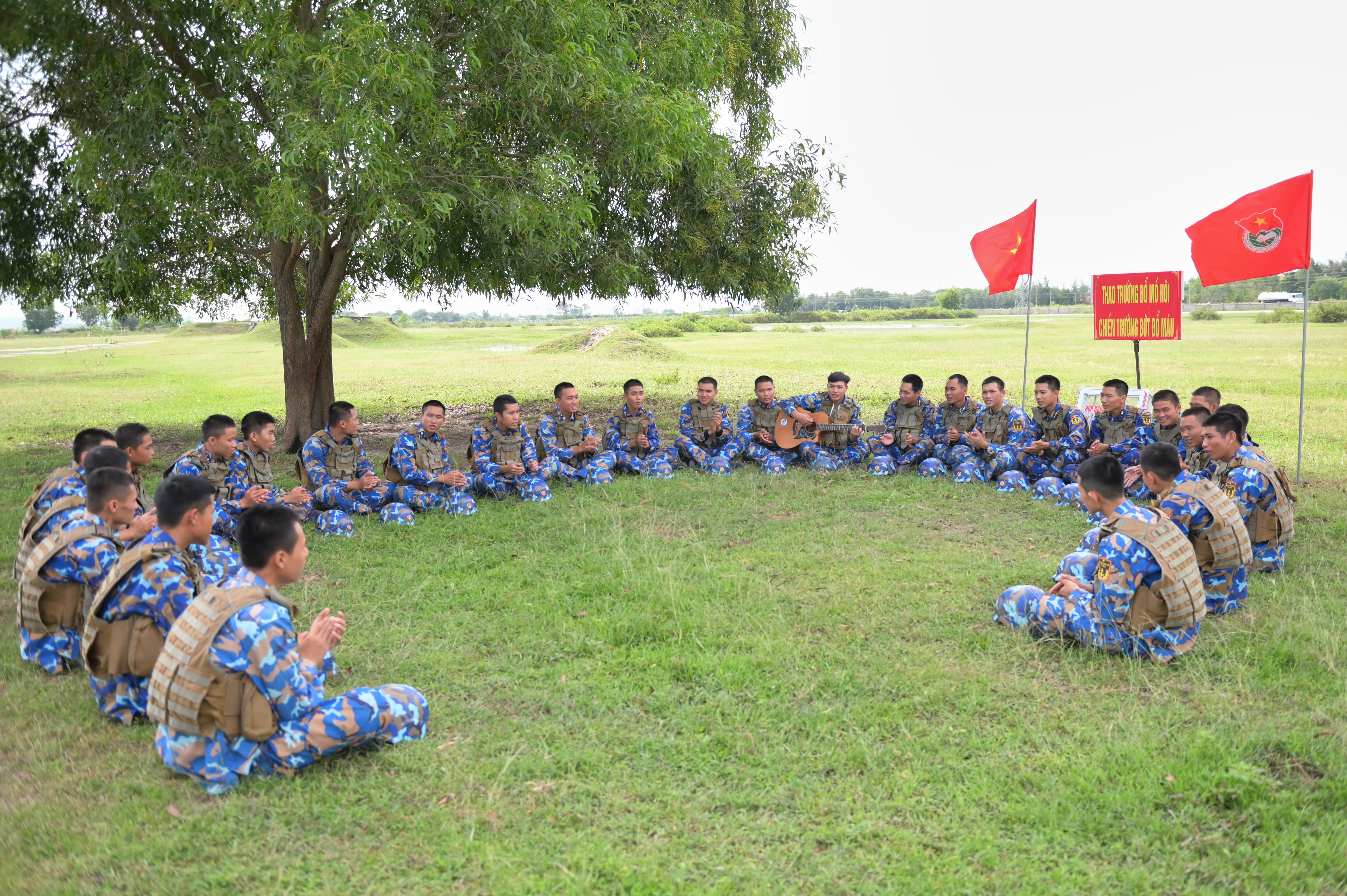 Chiến sĩ Lữ đoàn 101 giải lao trên thao trường. Ảnh: Vĩnh Thành