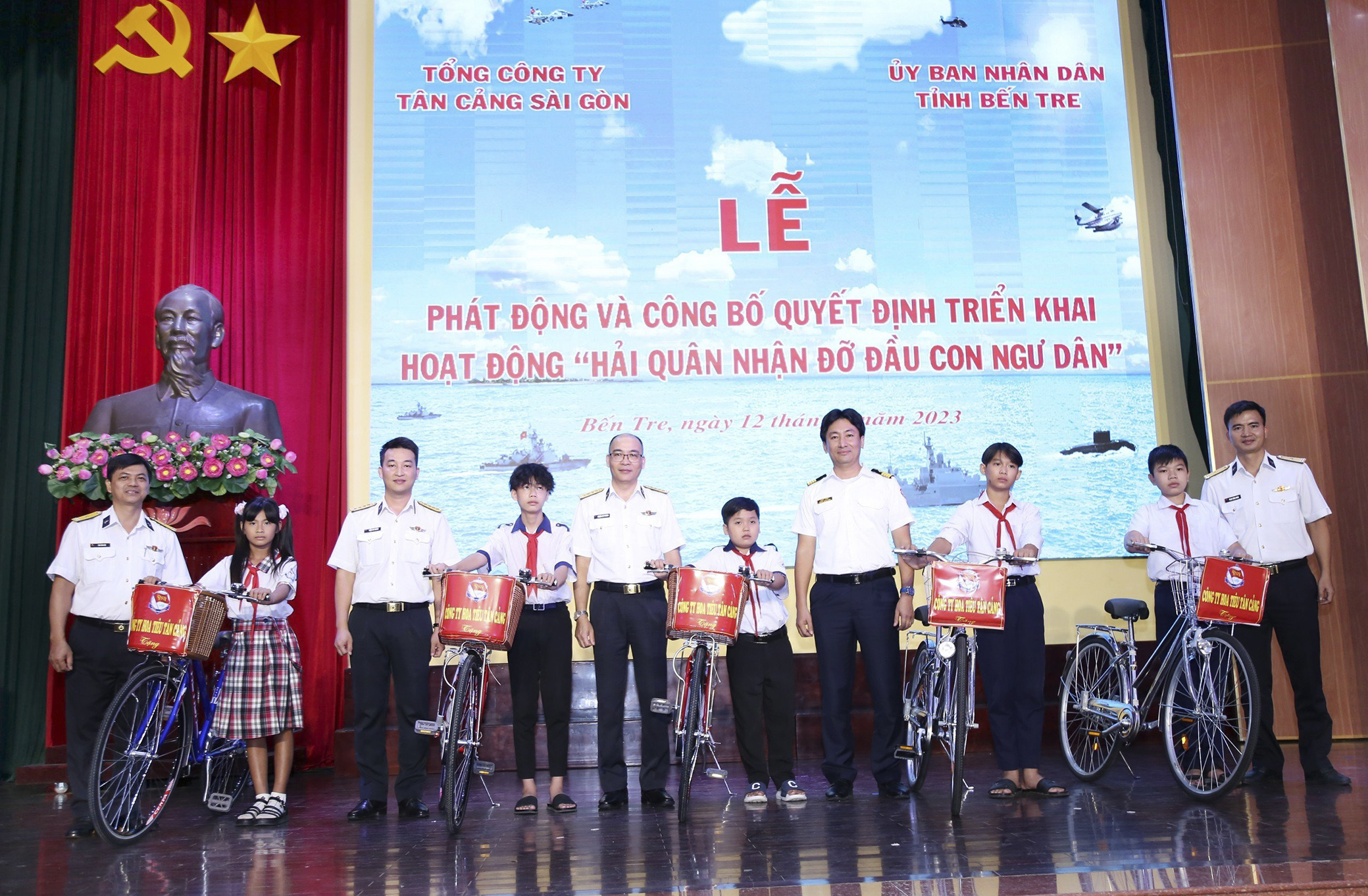 Lãnh đạo Công ty trao quyết định “Hải quân nhận đỡ đầu con ngư dân” tại tỉnh Bến Tre. Ảnh: Công Hoan