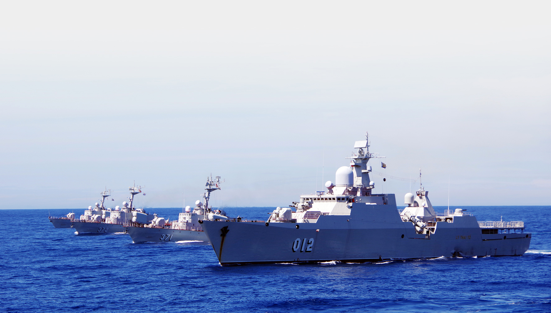 Đội hình tàu Lữ đoàn 162 huấn luyện trên biển. Ảnh: Văn Tuấn