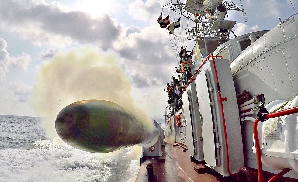 Tàu của Lữ đoàn 170 bắn ngư lôi. Ảnh: CTV