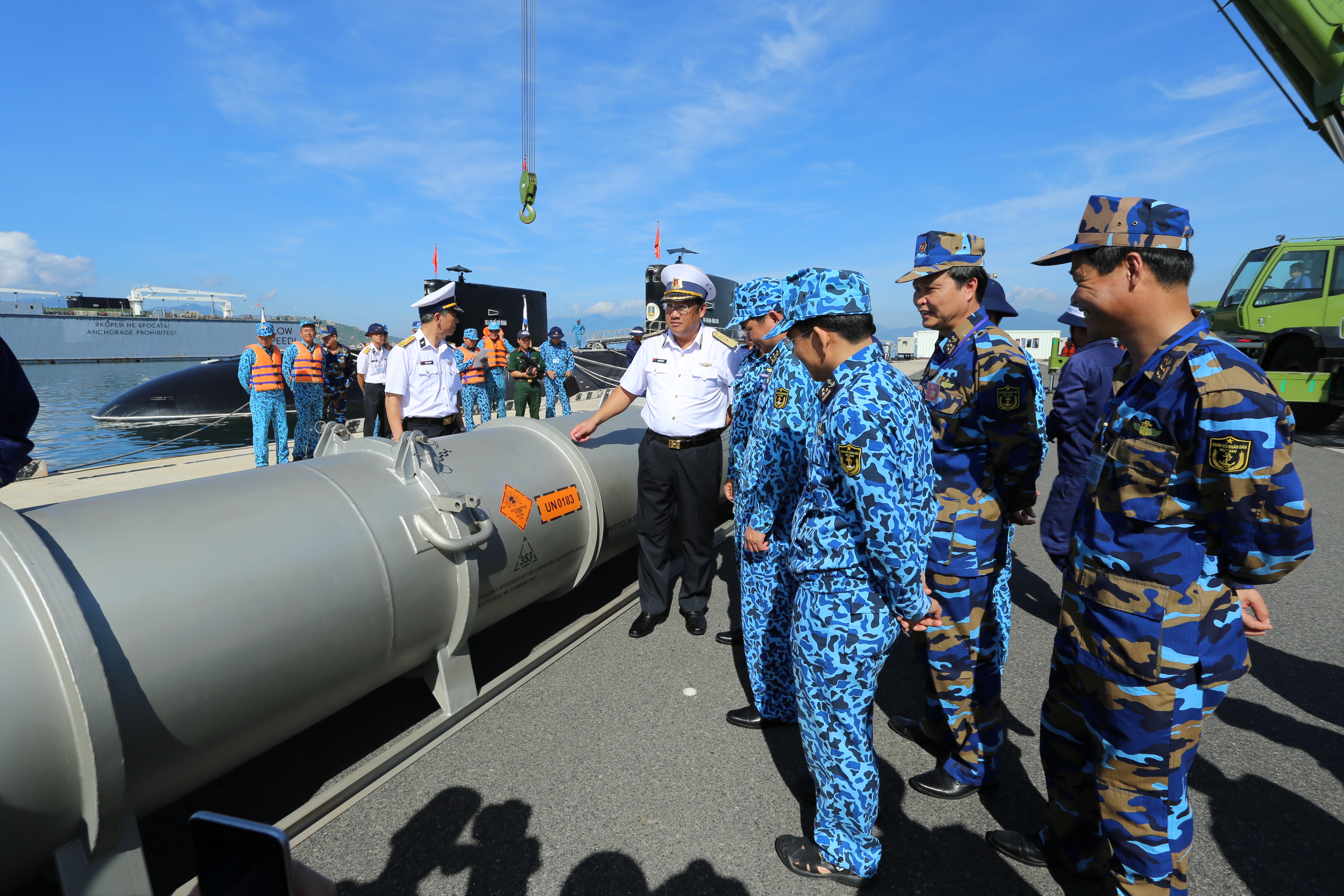 Tư lệnh Hải quân kiểm tra trang bị vũ khí tại Lữ đoàn 189. Ảnh: Duy Khánh