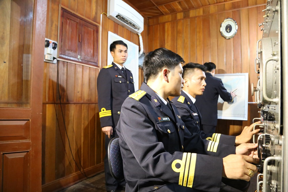 Những chia sẻ này của đồng chí Trạm trưởng chúng tôi đã trực tiếp thấy thông qua một ca trực đêm kiểu mẫu của đơn vị. Khi người đốc gác thông báo cho ca trực tiếp theo, cán bộ, chiến sĩ quân phục chỉnh tề, nhanh chóng hành quân đến vị trí đài quan sát. Mặc cho trên đỉnh núi cao, những cơn gió thổi mạnh, cái rét căm căm nhưng kíp trưởng của hai ca vẫn tiến hành bàn giao một cách tỷ mỷ nhất. Từ quan sát thực tế, đến tình hình bảo đảm an toàn đài trạm cũng được từng thành viên trong kíp ghi nhật ký bàn giao lại. Công việc của họ, chúng tôi nhìn thoáng qua tưởng chừng đơn giản nhưng cả một vùng biển rộng lớn được thu nhỏ qua lăng kính của “mắt thần”. Những con tàu vận tải nối tiếp nhau vận chuyển hàng hóa qua lại, đến các tàu cá của ngư dân và ngay cả mục tiêu tàu nước ngoài chỉ là những chấm ly ti trên màn hình nhưng các trắc thủ đều quan sát, phân tích hết các hoạt động. Tất cả không để sót lọt mục tiêu nào.