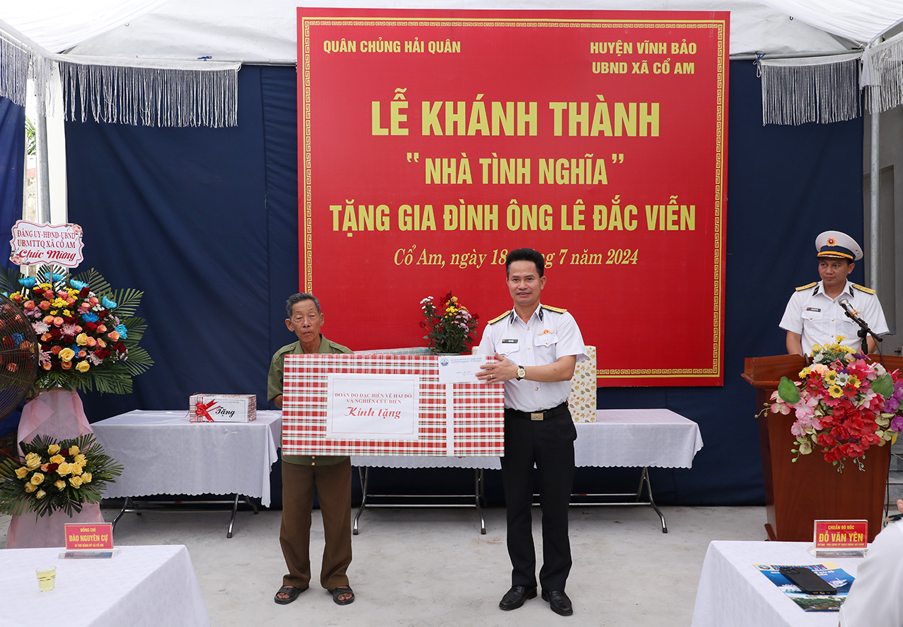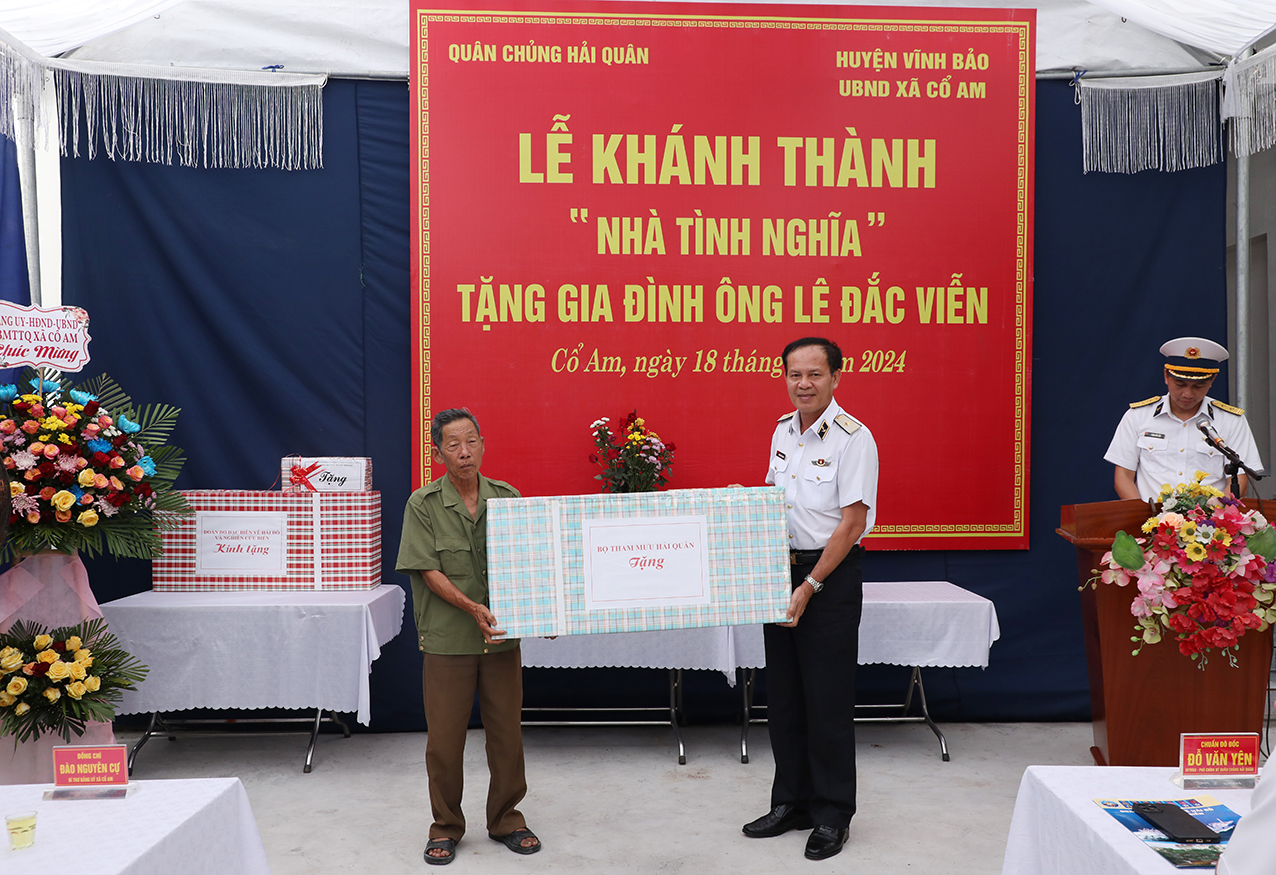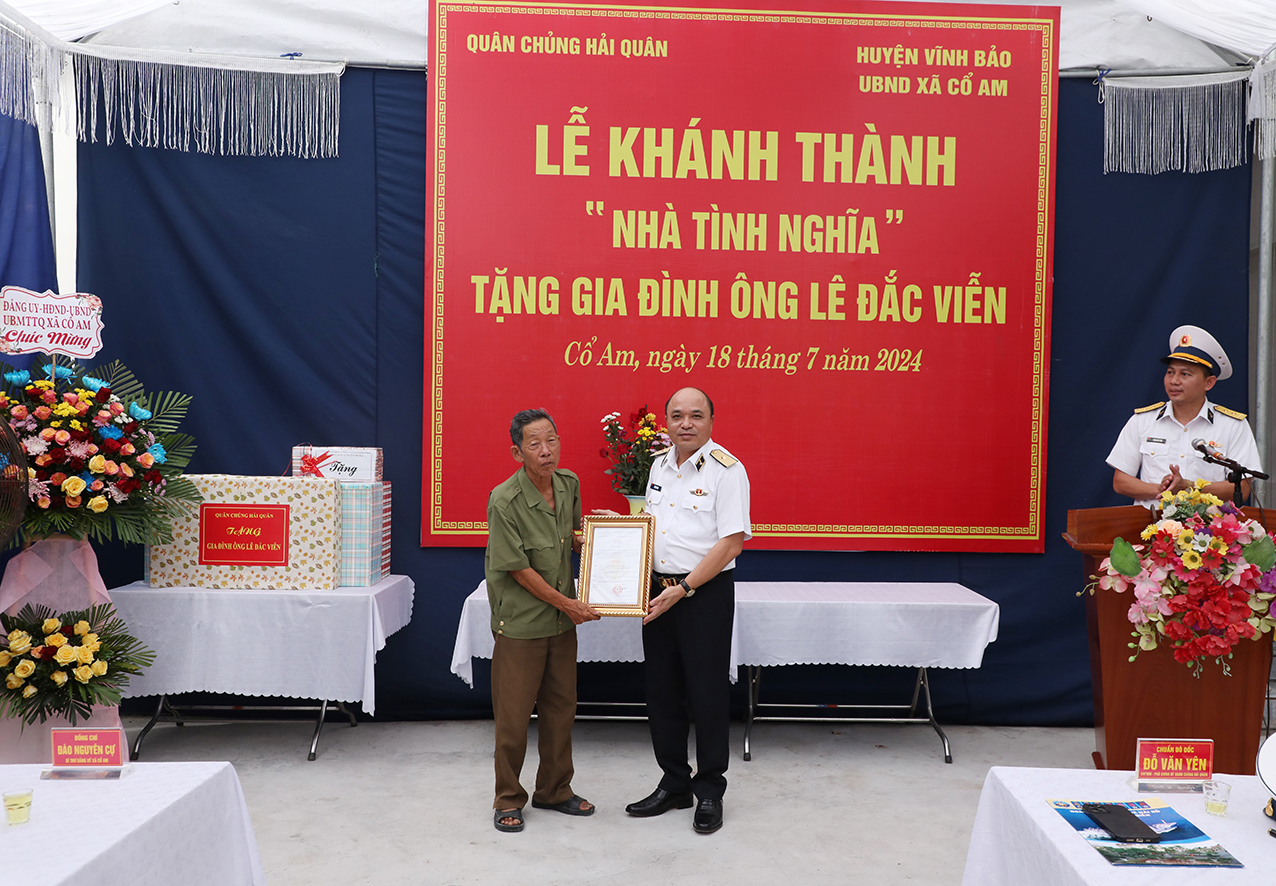 Chiều 18/7, tại xã Cổ Am, huyện Vĩnh Bảo, thành phố Hải Phòng, Quân chủng Hải quân phối hợp với chính quyền địa phương tổ chức khánh thành và bàn giao nhà tình nghĩa tặng gia đình ông Lê Đắc Viễn.