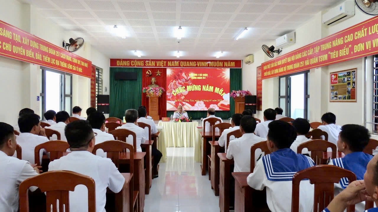 Đồng chí Phó Chính uỷ Hải quân đã gửi lời chúc mừng năm mới đến toàn thể cán bộ, chiến sĩ Trung đoàn 251, đồng thời biểu dương tinh thần trách nhiệm, sự nỗ lực và những thành tích mà đơn vị đã đạt được trong năm vừa qua.