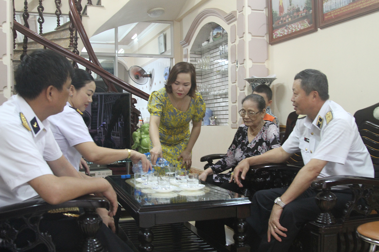 Đoàn công tác đã đến thăm gia đình Anh hùng Lực lượng vũ trang nhân dân, liệt sĩ Hồ Sĩ Nhất, Trợ lý Chính trị, Cục Lục quân, Bộ Tham mưu Hải quân và Anh hùng Lực lượng vũ trang nhân dân, liệt sĩ Nguyễn Văn Hiệu, Chính trị viên Tàu 154, Lữ đoàn 125, Vùng 2 Hải quân.