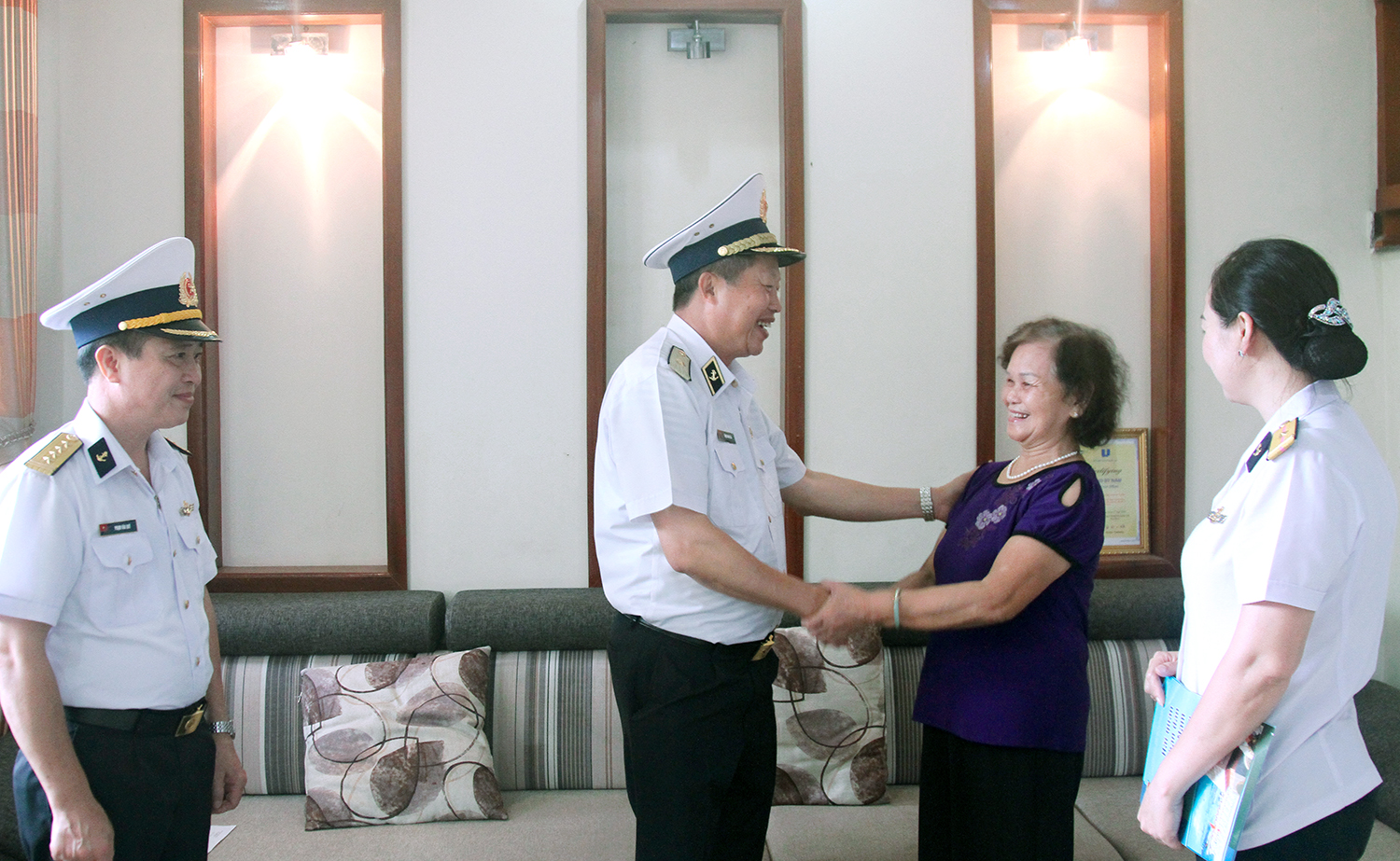 Bà Phạm Thị Vy, 81 tuổi, vợ Anh hùng, liệt sĩ Nguyễn Văn Hiệu chia sẻ: Qua các phương tiện truyền thông, bà thấy được sự phát triển, lớn mạnh của Quân chủng Hải quân. Bà rất mừng và mong rằng cán bộ, chiến sĩ Hải quân tiếp tục học tập, công tác thật tốt, hoàn thành tốt nhiệm vụ bảo vệ biển, đảo của Tổ quốc.