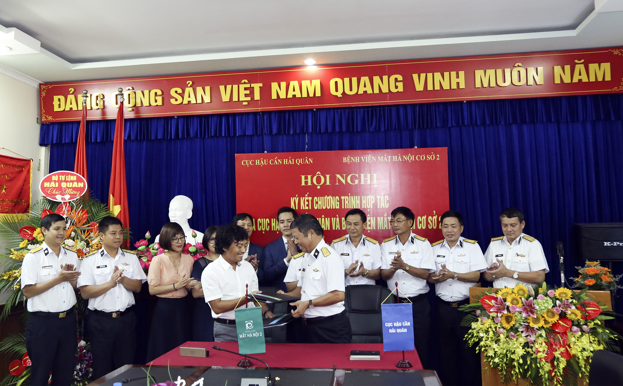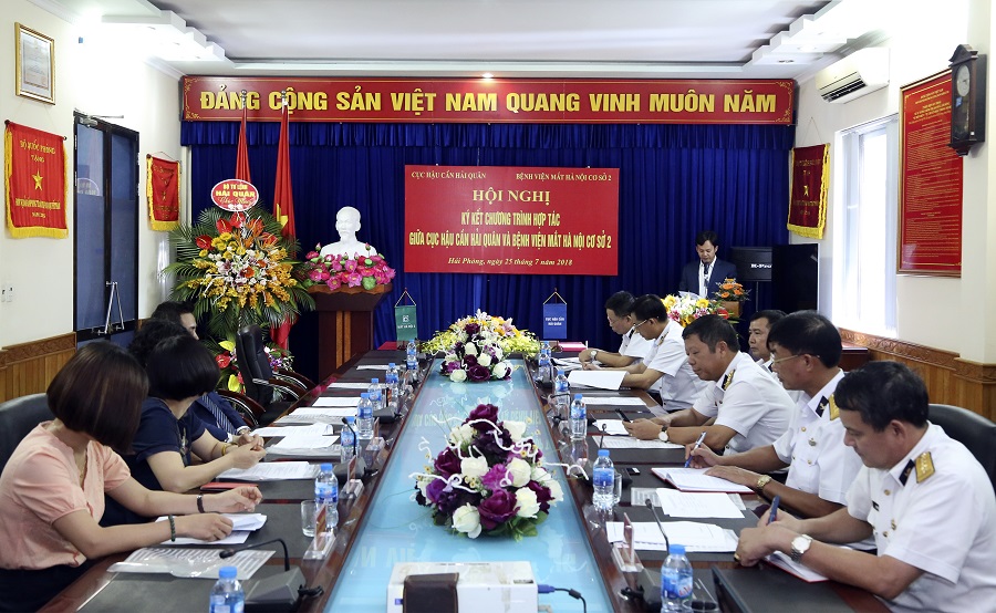 Chiều cùng ngày, Cục Hậu cần Hải quân và Bệnh viện Mắt Hà Nội (cơ sở 2) đã tổ chức Hội nghị Ký kết chương trình hợp tác. Đại tá Bùi Văn Thiết, Chủ nhiệm Hậu cần Hải quân và ông Lê Quản Cần, Tổng giám đốc Bệnh viện Mắt Hà Nội (cơ sở 2) đồng chủ trì.