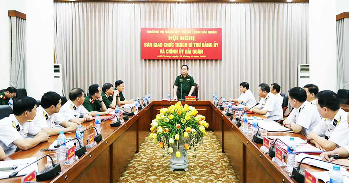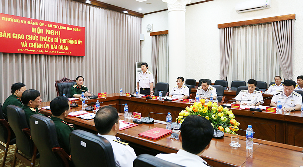 Chiều 26-9, tại Hải Phòng, Thường vụ Đảng ủy, Bộ Tư lệnh Hải quân tổ chức hội nghị bàn giao chức trách Bí thư Đảng ủy và Chính ủy Hải quân.