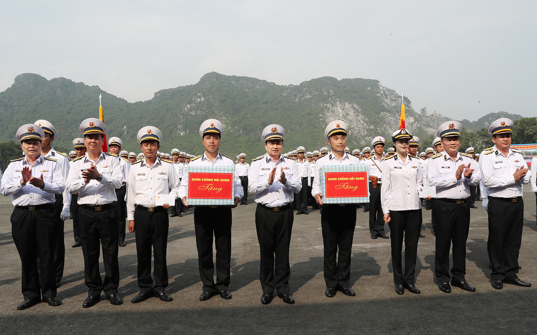 Đồng chí Tư lệnh Hải quân tặng quà lực lượng diễu binh, diễu hành