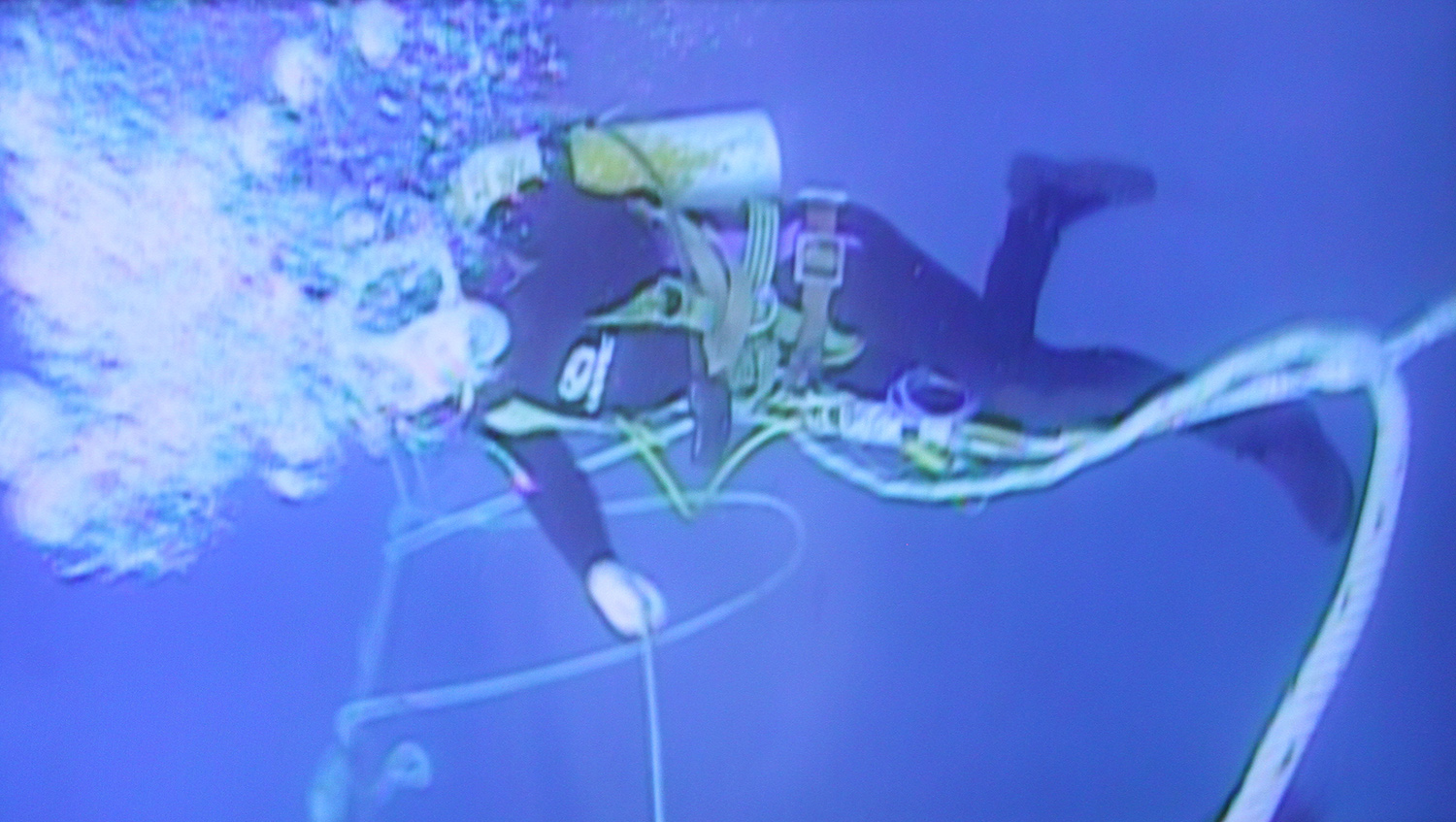 Do thời tiết xấu sóng to, nước chảy xiết trên 1,3 hải lý/giờ, lưới tản mát nhiều, thợ lặn chỉ xuống được độ sâu 22 m sau đó phải quay trở lại tàu nên việc buộc túm lưới không đạt như yêu cầu.