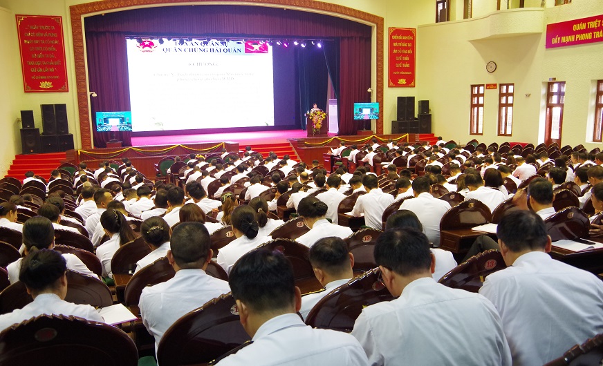 Tại hội nghị, báo cáo viên đã giới thiệu các chuyên đề: Một số nội dung cơ bản của Nghị định số 81/2019/NĐ-CP, ngày 11/11/2019 của Chính phủ về phòng, chống phổ biến vũ khí hủy diệt hàng loạt; Một số loại tội phạm trong lĩnh vực công nghệ thông tin, mạng viễn thông và các biện pháp phòng ngừa, ngăn chặn; Luật Phòng, chống tác hại của rượu, bia; Luật Xử lý vi phạm hành chính sửa đổi; Một số nội dung cơ bản của Luật Bảo vệ môi trường; Một số nội dung cơ bản của Luật Thỏa thuận quốc tế và quy định của Bộ Quốc phòng về xây dựng, ký kết và thực hiện điều ước quốc tế, thỏa thuận trong Quân đội nhân dân Việt Nam...