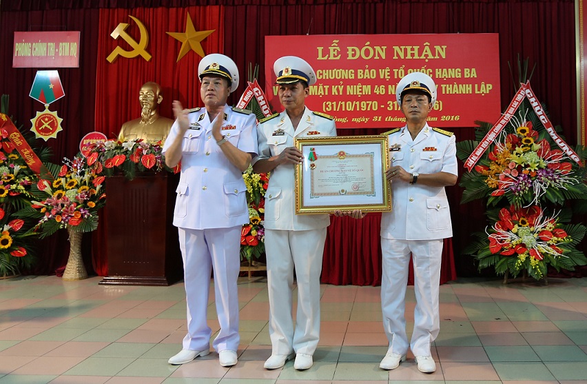 Chiều 31-10, tại Hải Phòng, Phòng Chính trị, Bộ Tham mưu Hải quân tổ chức Lễ đón nhận Huân chương Bảo vệ Tổ quốc hạng Ba và gặp mặt kỷ niệm 46 năm thành lập (31-10-1970 – 31-10-2016). Dự lễ có Chuẩn Đô đốc Phạm Xuân Điệp, Phó Tư lệnh, Tham mưu trưởng Hải quân; đại biểu các cơ quan, đơn vị Bộ Tham mưu Hải quân và các địa phương phối hợp tuyên truyền biển đảo với Bộ Tham mưu Hải quân.