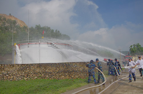 Luyện tập phòng chống chày nổ tại phân kho xăng dầu Tiên Hội
