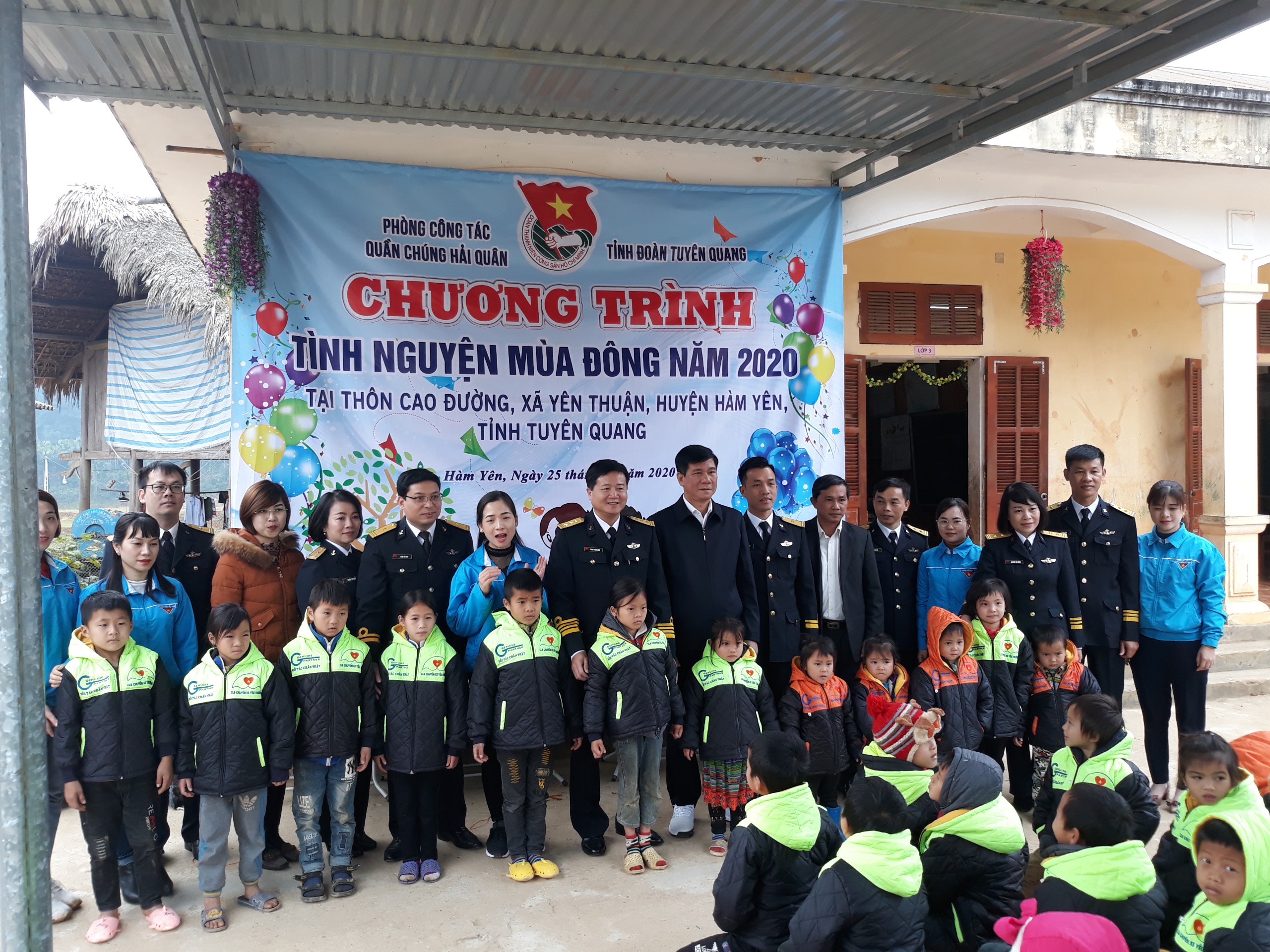 Dịp này, Phòng Công tác quần chúng đã tổ chức khánh thành, bàn giao công trình khu vui chơi cho thanh, thiếu nhi và tặng 200 áo ấm cho học sinh thôn Cao Đường, xã Yên Thuận, huyện Hàm Yên với tổng số tiền trị giá hơn 70 triệu đồng. Đại diện Phòng Công tác quần chúng đã trao tặng Tỉnh đoàn Tuyên Quang 40 tập thơ "Bức họa Trường Sa" của tác giả Chuẩn Đô đốc Đặng Minh Hải, Phó Chính ủy Hải quân.