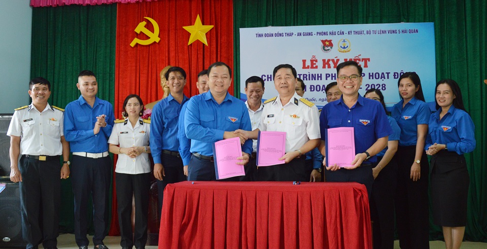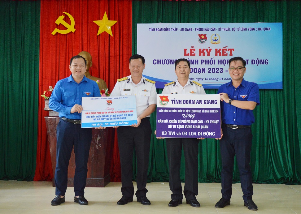 Ngày 18/1, tại TP. Phú Quốc, tỉnh Kiên Giang, Phòng Hậu cần-Kỹ thuật Vùng 5 Hải quân và Tỉnh đoàn An Giang, Tỉnh đoàn Đồng Tháp đã ký kết chương trình phối hợp hoạt động giai đoạn 2023-2028.