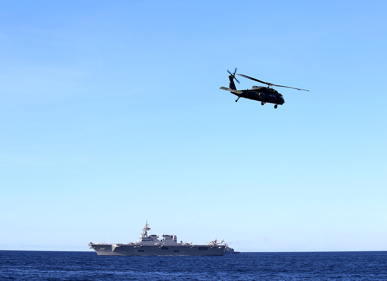 Máy báy trực thăng chiến đấu thực hành cất hạ cánh trong diễn tập an nình hàng hải