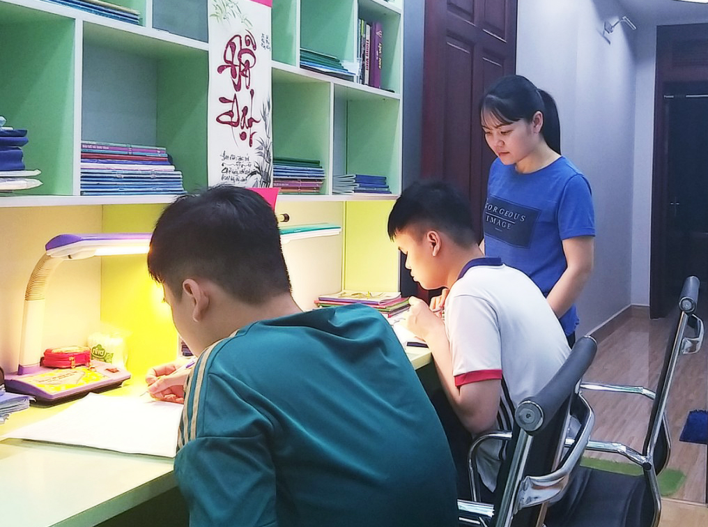 Chị chia sẻ: Thời gian các con học tiểu học, mình rèn các con nền nếp học tập. Khi đó, tôi thường làm việc bên cạnh bàn học của con để động viên và hỗ trợ những bài con chưa hiểu. Khi con gái đầu lên cấp 2, mình theo dõi, định hướng, dạy con phương pháp học và hướng dẫn con khi cần thiết. Vì các cháu được rèn từ nhỏ nên rất tự giác, phấn đấu trong học tập.