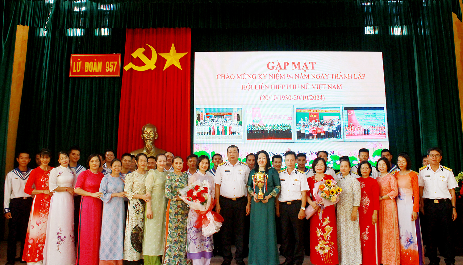 Ngày 18/10, Lữ đoàn 957, Vùng 4 Hải quân tổ chức gặp mặt, chúc mừng cán bộ, hội viên phụ nữ nhân kỷ niệm 94 năm Ngày thành lập Hội Liên hiệp Phụ nữ (LHPN) Việt Nam và 14 năm Ngày phụ nữ Việt Nam.