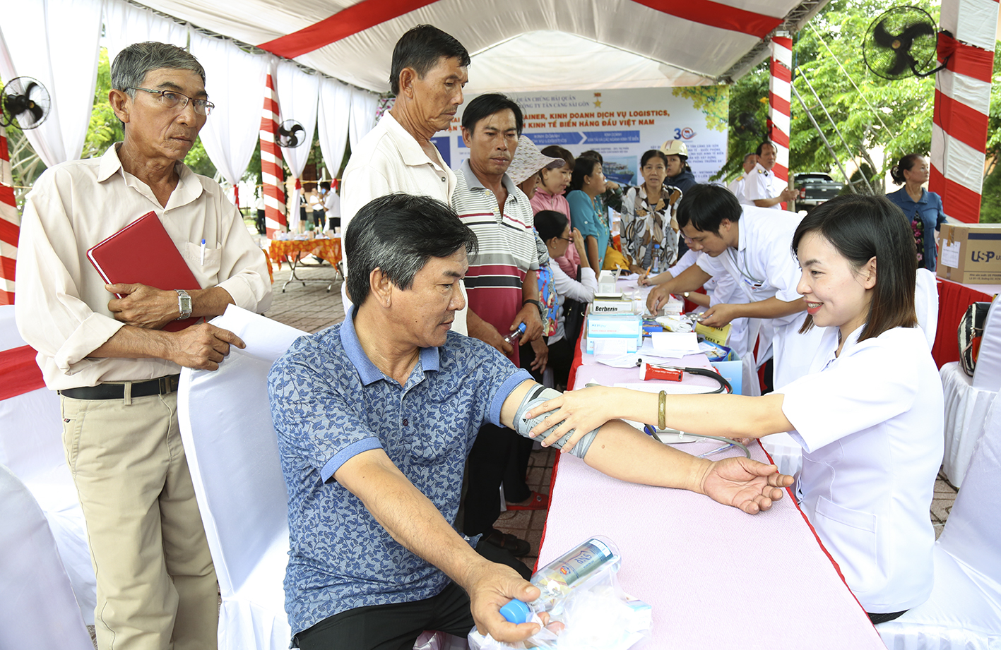Trung tâm Y tế Tân cảng Sài Gòn khám bệnh cho ngư dân huyện Cần Giờ, TP. Hồ Chí Minh trong Chương trình "Hải quân Việt Nam làm điểm tựa cho ngư dân vươn khơi bám biển"