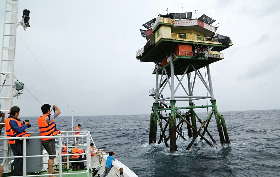 Tàu nhổ neo rời cảng Vùng 2 Hải quân tiến thẳng ra biển, vừa vượt qua phao số 0 con tàu đã dập dềnh, chao đảo. Đài chỉ huy tàu thông báo “Sóng biển trên cấp 6, đề nghị các đồng chí cố định các vật dụng trên tàu lại lần cuối”. Bữa cơm tối vắng lặng vì hầu như đoàn công tác đều bị say sóng. Chị Trần Thị Kim Thoa, Biên tập viên Đài Phát thanh-Truyền hình Hậu Giang chia sẻ: Đây là lần đầu tiên tôi được đi theo đoàn chúc tết nhà giàn bởi vậy chuyện say sóng là không tránh khỏi. Thực sự lúc này tôi rất mệt nhưng vẫn mong được đến và lên nhà giàn với các chiến sĩ. Đây không chỉ là vinh dự trách nhiệm của cơ quan cử đi mà còn là mơ ước của tôi từ khi chưa đi làm báo.