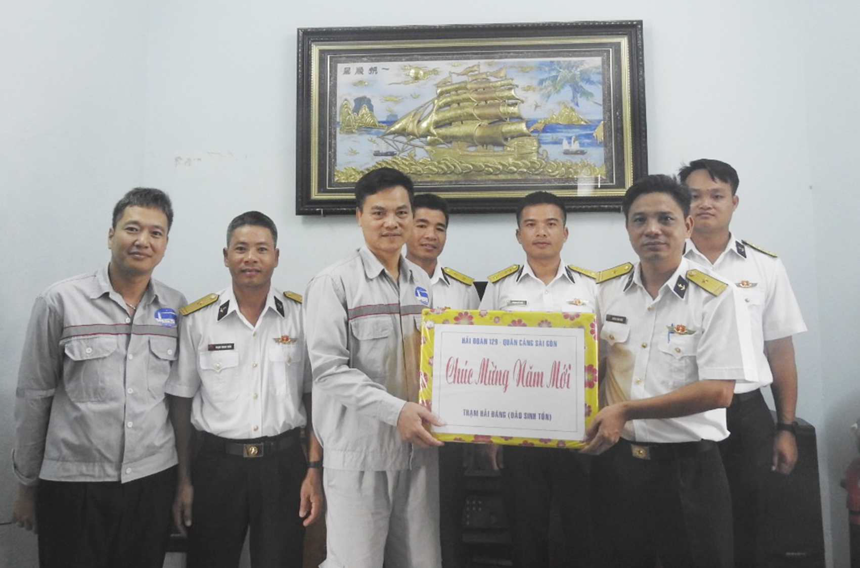 Sau hơn ba ngày vượt sóng lớn, Tàu 744 đã chở đoàn công tác của Hải đoàn 129, Quân cảng Sài Gòn có mặt tại huyện đảo Trường Sa (tỉnh Khánh Hòa) để trao những món quà Tết đầu tiên đến với cán bộ, chiến sĩ và nhân dân ở nơi đảo xa.