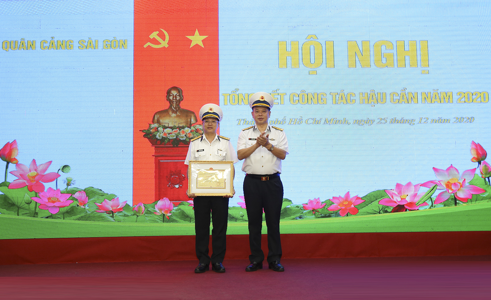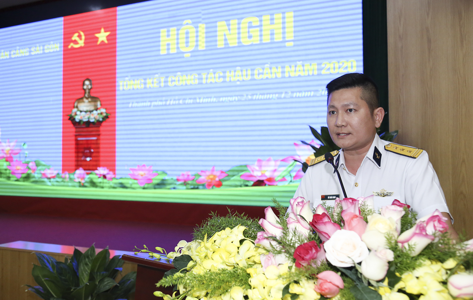 Chiều 25-12, tại TP. Hồ Chí Minh, Quân cảng Sài Gòn (QCSG) tổ chức Hội nghị tổng kết công tác hậu cần năm 2020 và triển khai nhiệm vụ công tác hậu cần năm 2021. Tới dự có Đại tá Nguyễn Như Hải, Phó Chủ nhiệm Hậu cần Hải quân. Thượng tá Võ Hoài Nam, Phó Tổng giám đốc Tổng công ty Tân cảng Sài Gòn chủ trì.