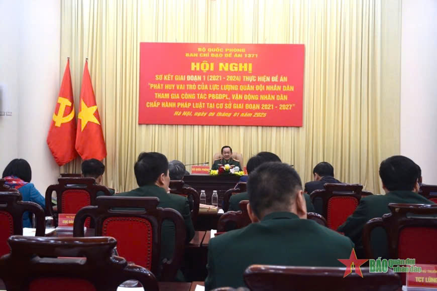 Sáng 9/1, Ban chỉ đạo Đề án 1371 Bộ Quốc phòng tổ chức Hội nghị sơ kết giai đoạn 1 (2021-2024) thực hiện đề án “Phát huy vai trò của lực lượng Quân đội nhân dân tham gia công tác phổ biến, giáo dục pháp luật, vận động nhân dân chấp hành pháp luật tại cơ sở giai đoạn 2021-2027” (Đề án 1371) theo hình thức trực tiếp và trực tuyến. Thượng tướng Võ Minh Lương, Ủy viên Trung ương Đảng, Ủy viên Thường vụ Quân ủy Trung ương, Thứ trưởng Bộ Quốc phòng, Trưởng ban chỉ đạo đề án chủ trì.