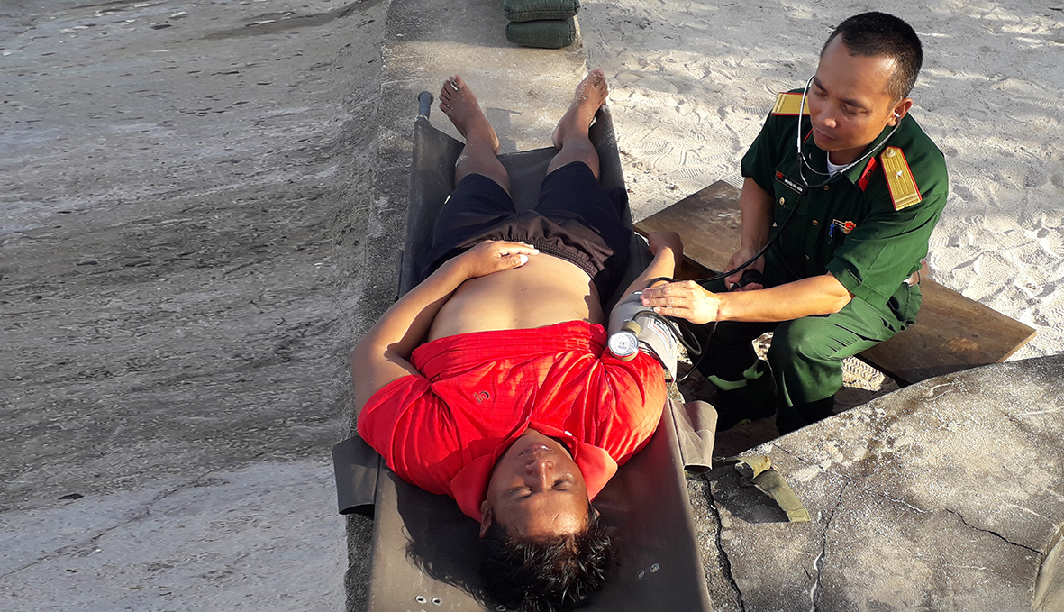 2 ngư dân được kiểm tra sức khỏe ngay khi được cứu lên đảo