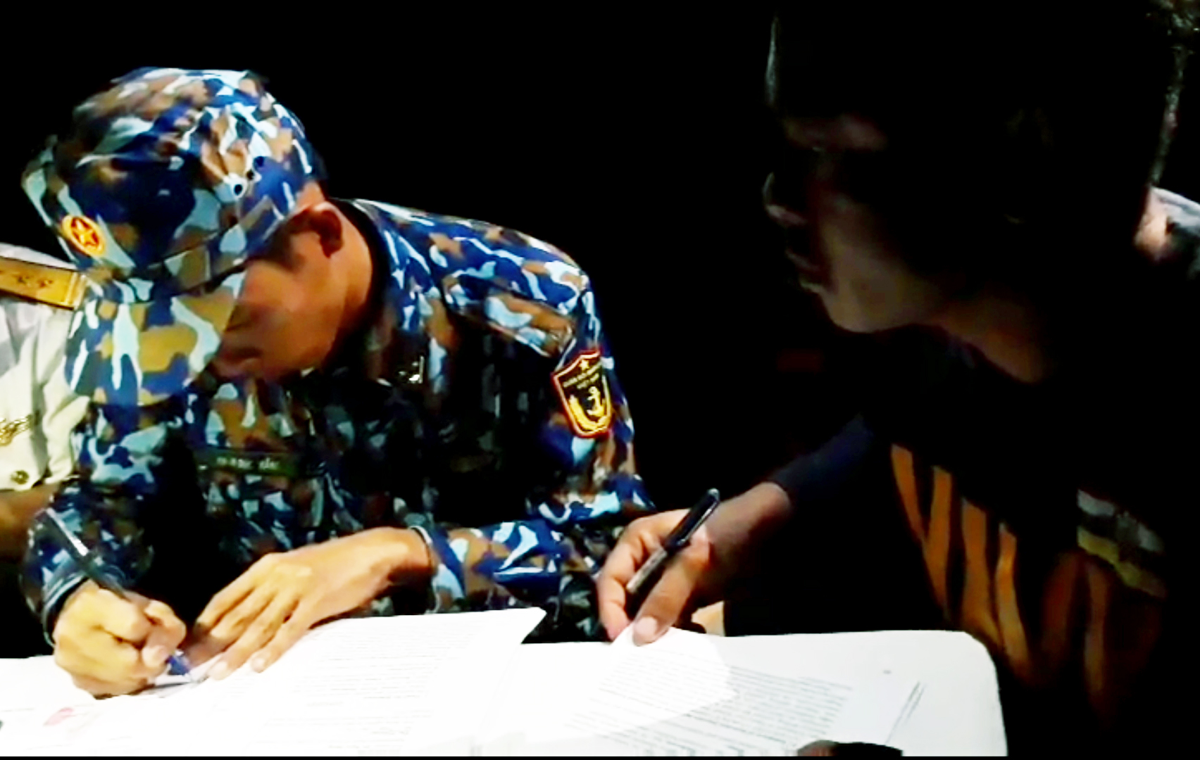 Sĩ quan Hải quân Việt Nam và sĩ quan Hải quân Phi-lip-pin ký văn bản bàn giao ngư dân trên biển