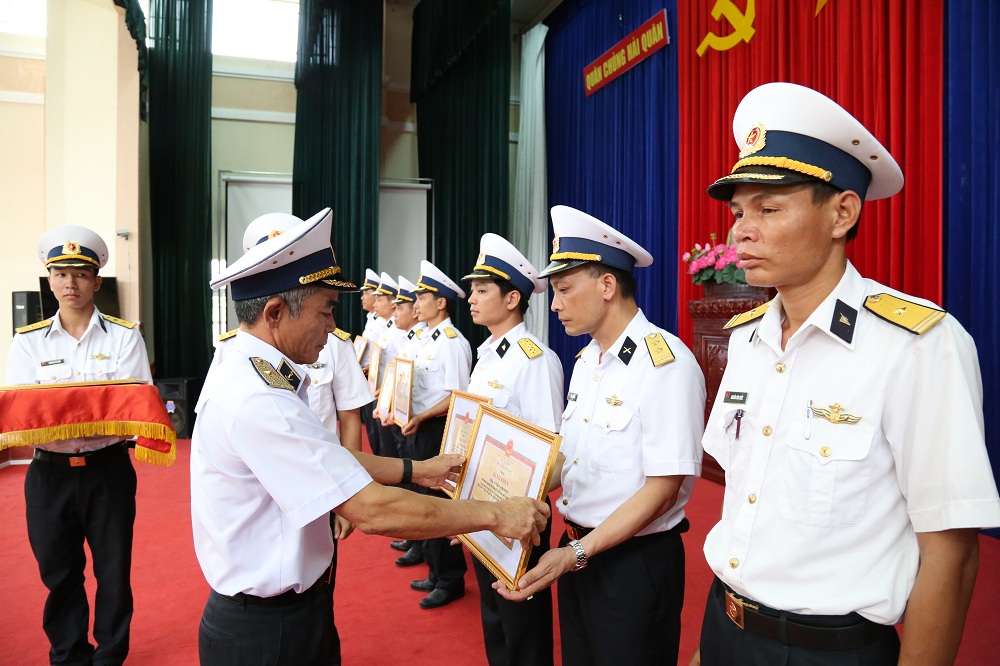 Chuẩn Đô đốc Lương Việt Hùng trao thưởng cho các cá nhân đạt thành tích tốt trong hội thi