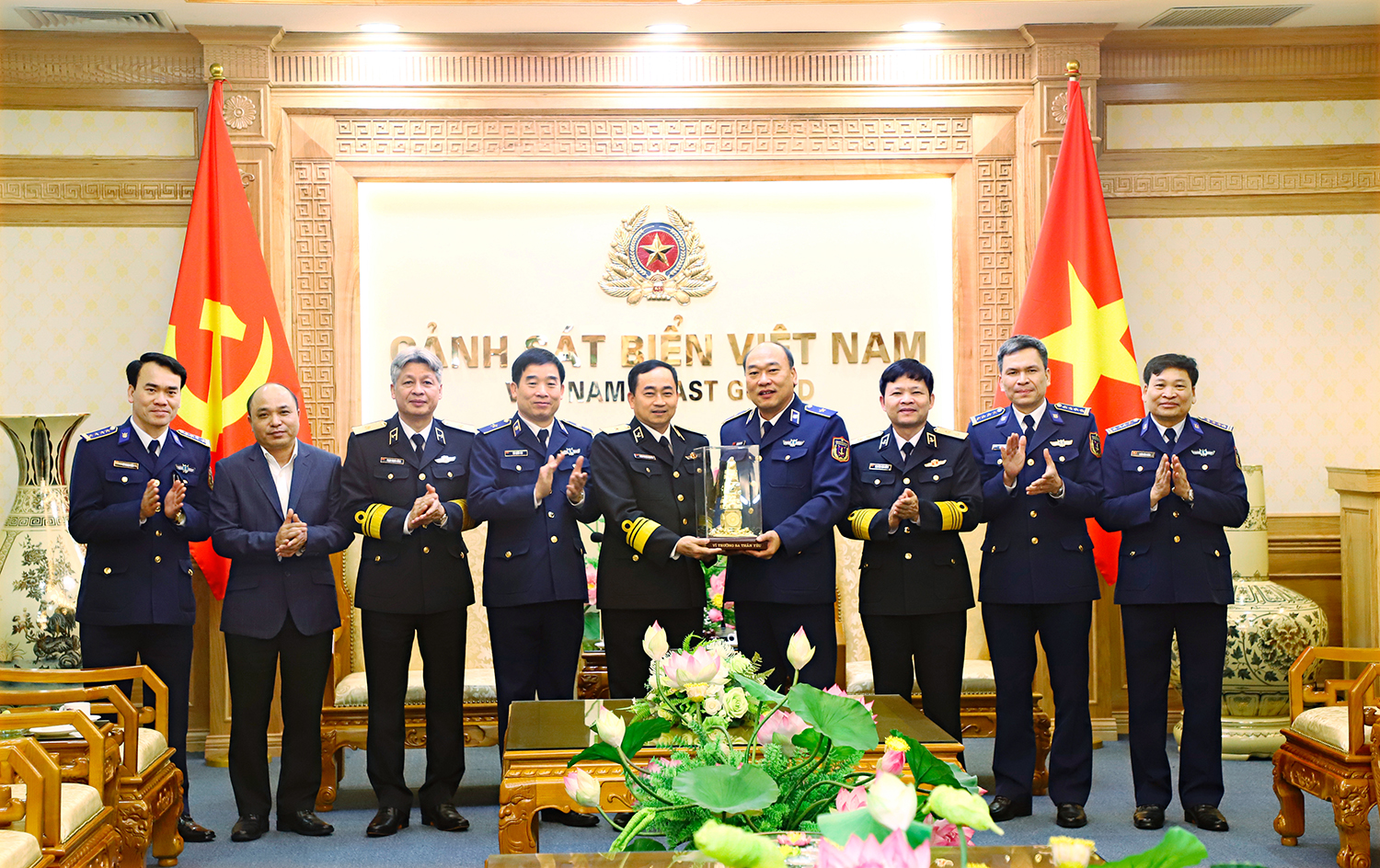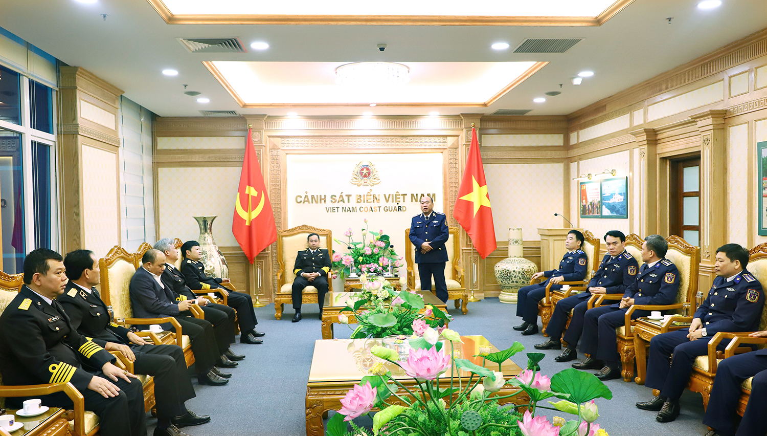 Đón và làm việc với đoàn có Thiếu tướng Lê Quang Đạo, Tư lệnh Cảnh sát biển; Thiếu tướng Bùi Quốc Oai, Chính ủy Cảnh sát biển; thủ trưởng Bộ Tư lệnh Cảnh sát biển; thủ trưởng các phòng chức năng Bộ Tư lệnh Cảnh sát biển.
