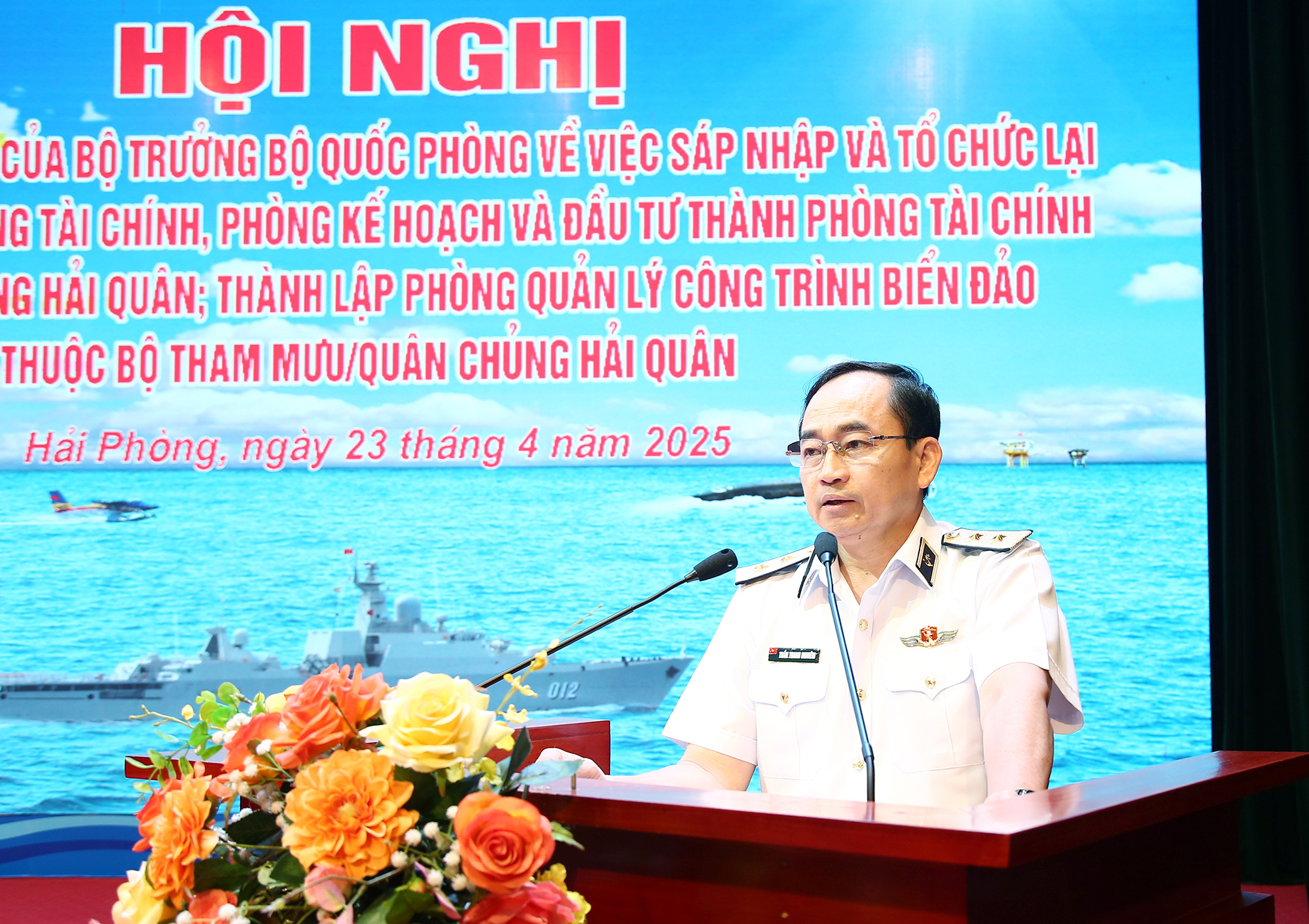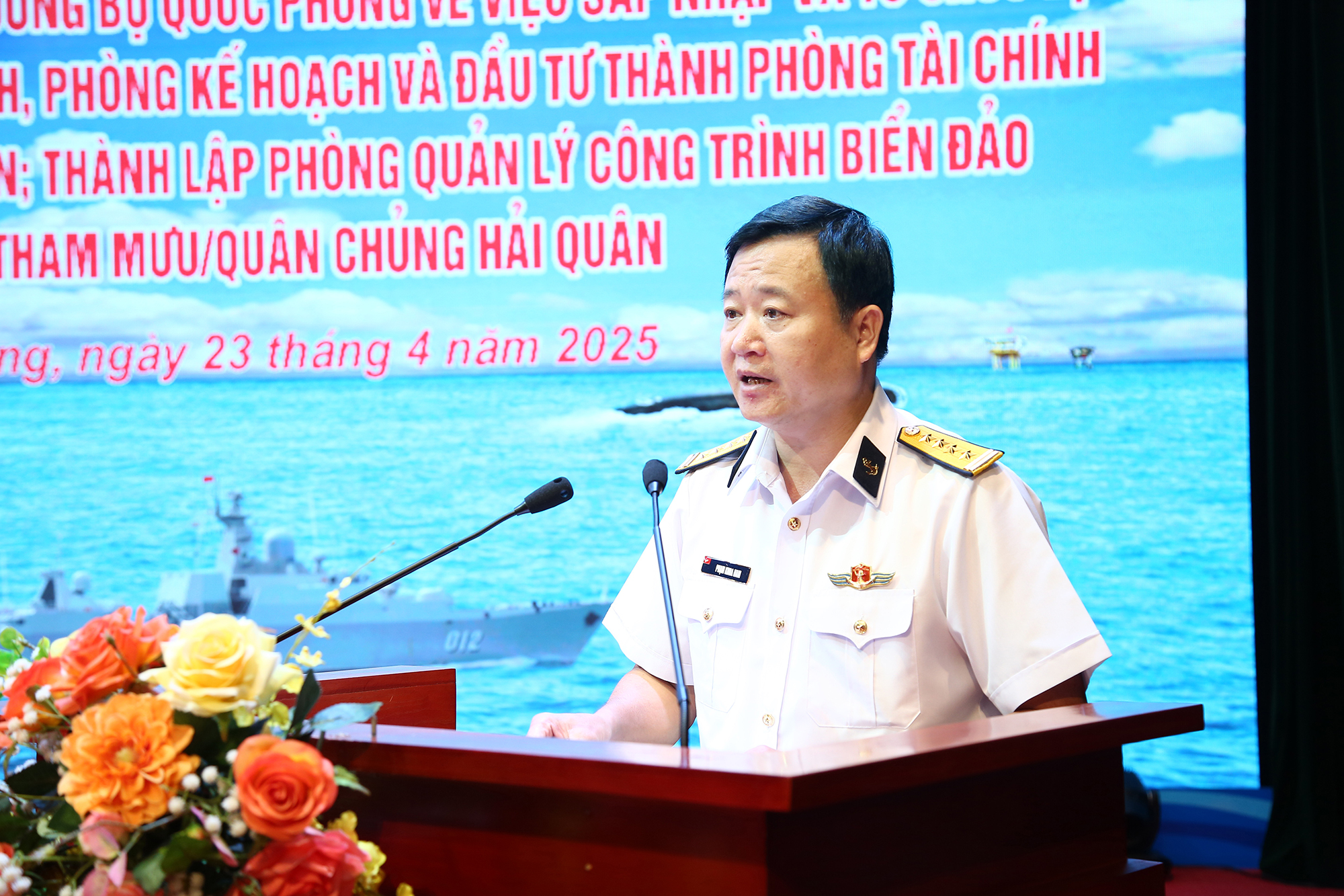 Ngày 14/4/2025, Bộ trưởng Bộ Quốc phòng đã ra Quyết định số 1558/QĐ-BQP về việc sáp nhập và tổ chức lại Phòng Kinh tế, Phòng Tài chính, Phòng Kế hoạch và Đầu tư thành Phòng Tài chính thuộc Quân chủng Hải quân; Quyết định số 1559/QĐ-BQP về việc thành lập Phòng Quản lý công trình biển đảo thuộc Bộ Tham mưu Hải quân.